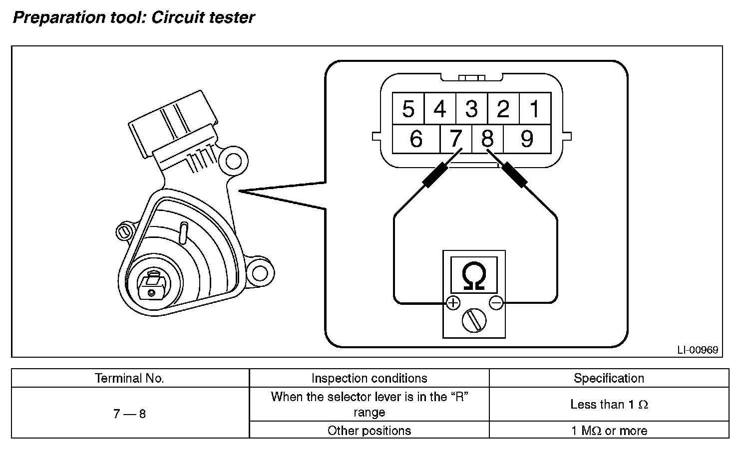 3. Replace the inhibitor switch if the inspection result is not within the standard value.