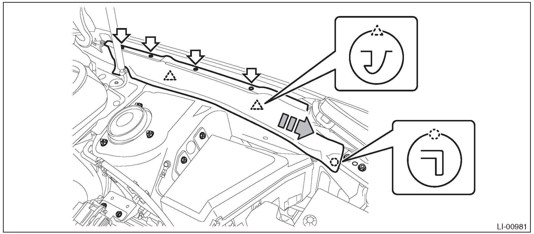 2. Release the claws of the fender cover assembly UPR by pulling it forward and remove the fender cover.