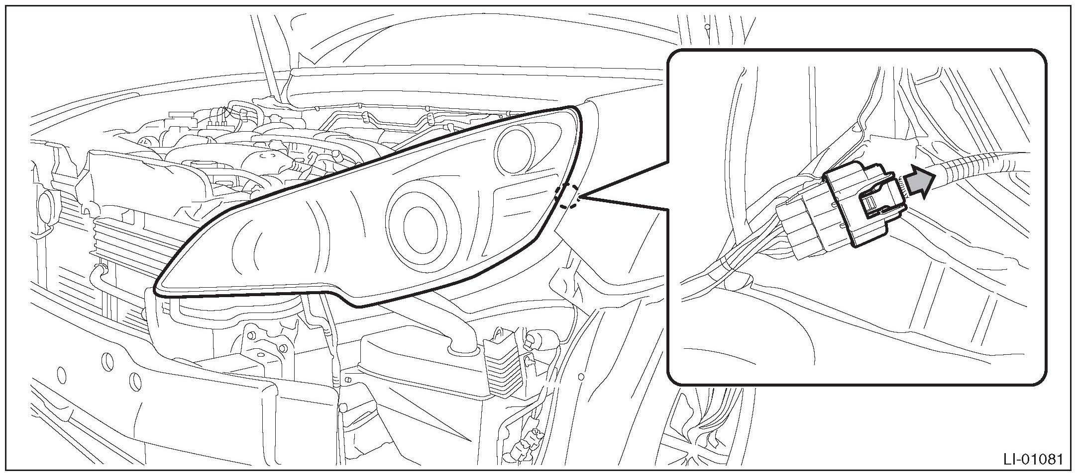 1. Remove the bolts and clips, and pull out the headlight assembly to the front of the vehicle.