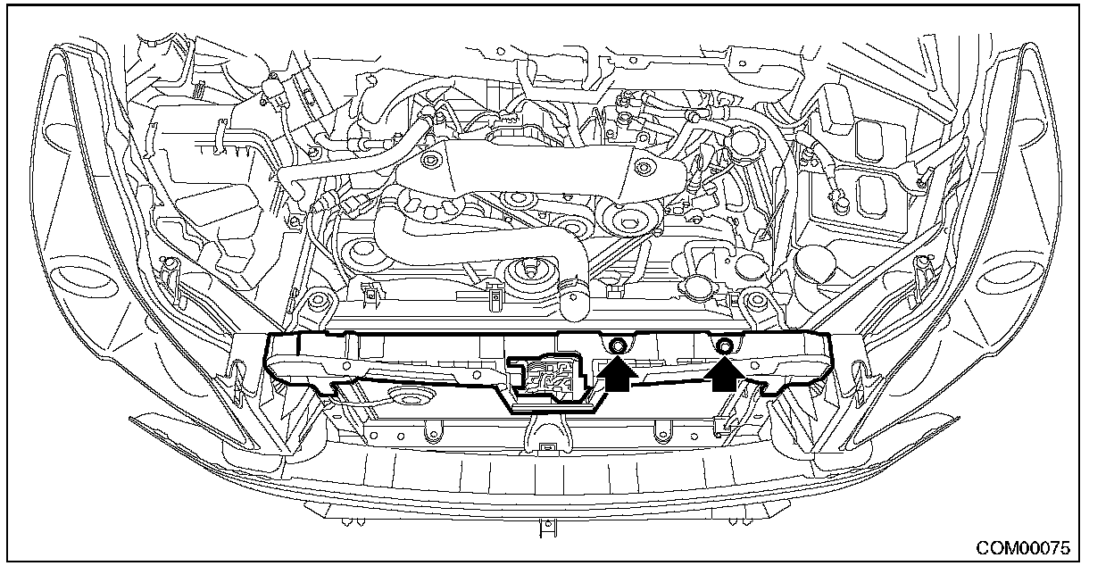 CAUTION: Install the bumper face so that the under cover front end (b) comes inside the front bumper face (a).