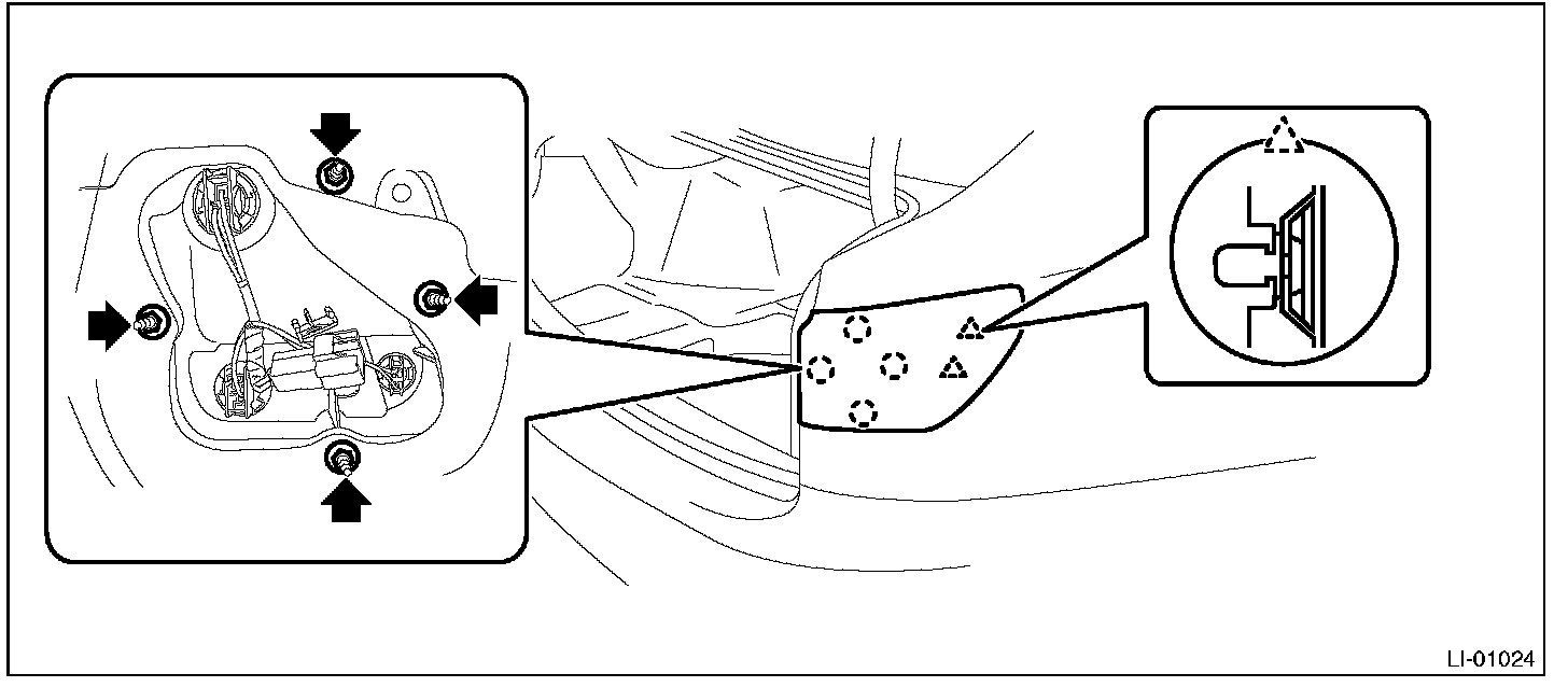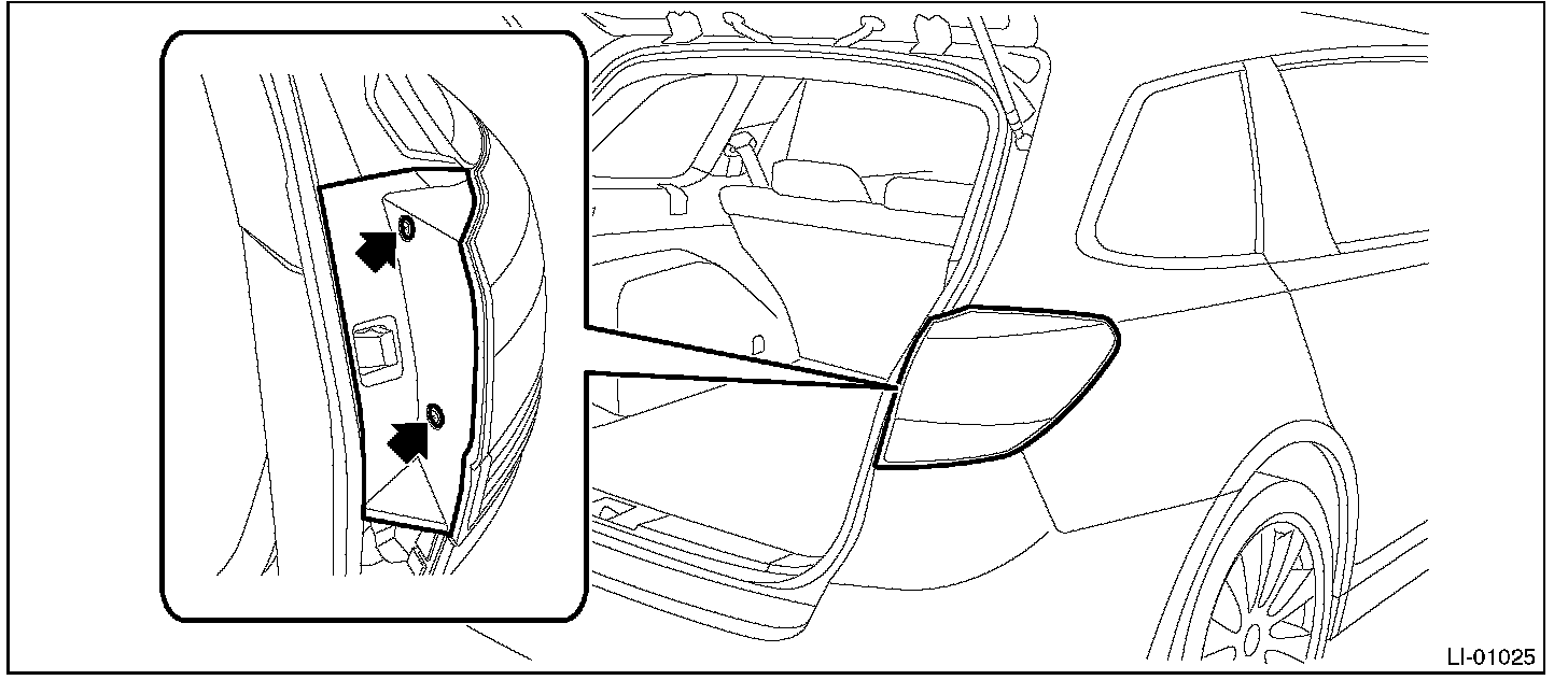 1. Release the bolts and clips, then pull out the rear combination light assembly to the vehicle rear.
