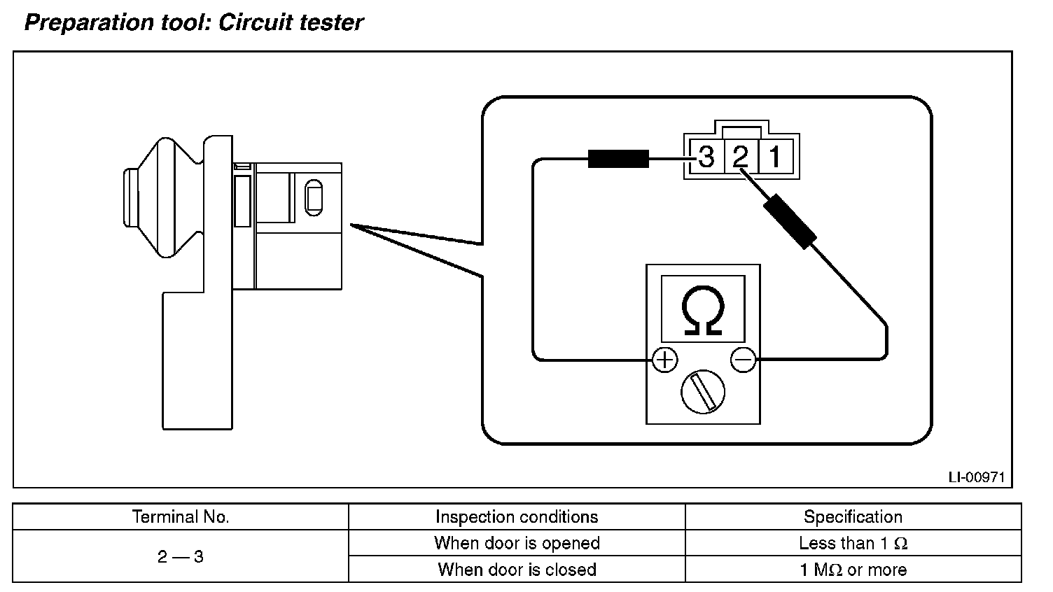 3. If the inspection result is not within the standard value, replace the rear gate latch and actuator assembly.