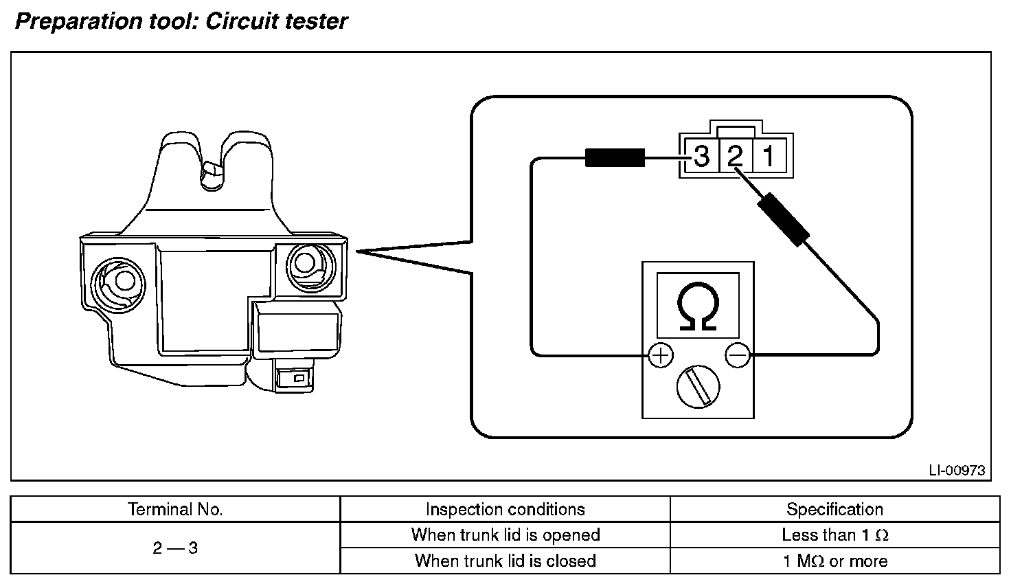 3. If the inspection result is not within the standard value, replace the trunk lid latch and actuator assembly.