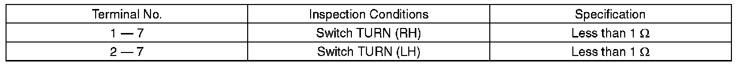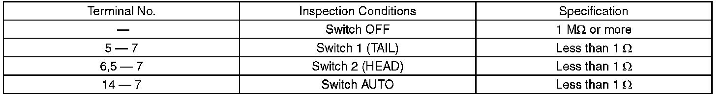 3. Replace the combination switch (light) if the inspection result is not within the standard value.