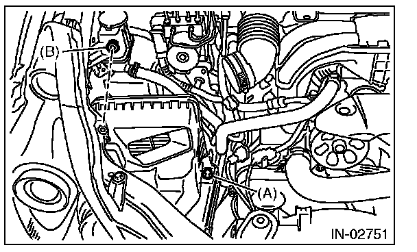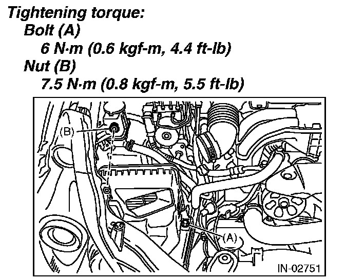 1. Install the bolt (A) and nut (B) which secure the air cleaner case (front) to the body.