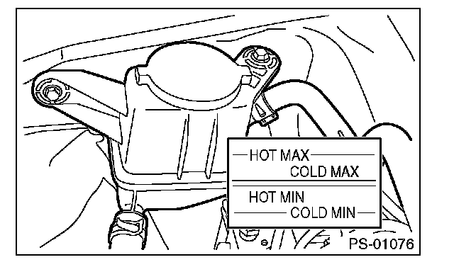 5) If the steering wheel is turned in a low fluid level condition, air will be sucked into the pipe. If air has entered, leave it for about half an hour and then repeat step 4) again.