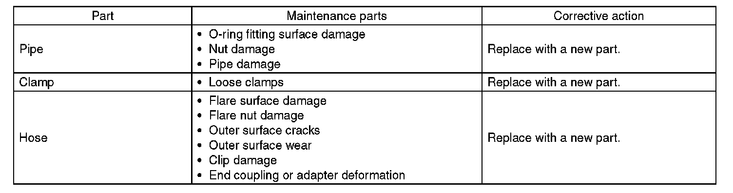 Although the surface layer materials of rubber hoses have excellent weathering resistance, heat resistance and resistance for low temperature brittleness, they are likely to be damaged chemically by brake fluid, battery electrolyte, engine oil and automatic transmission fluid and their service lives are to be very shortened. Wipe off hoses immediately if any of these come into contact with the hoses.