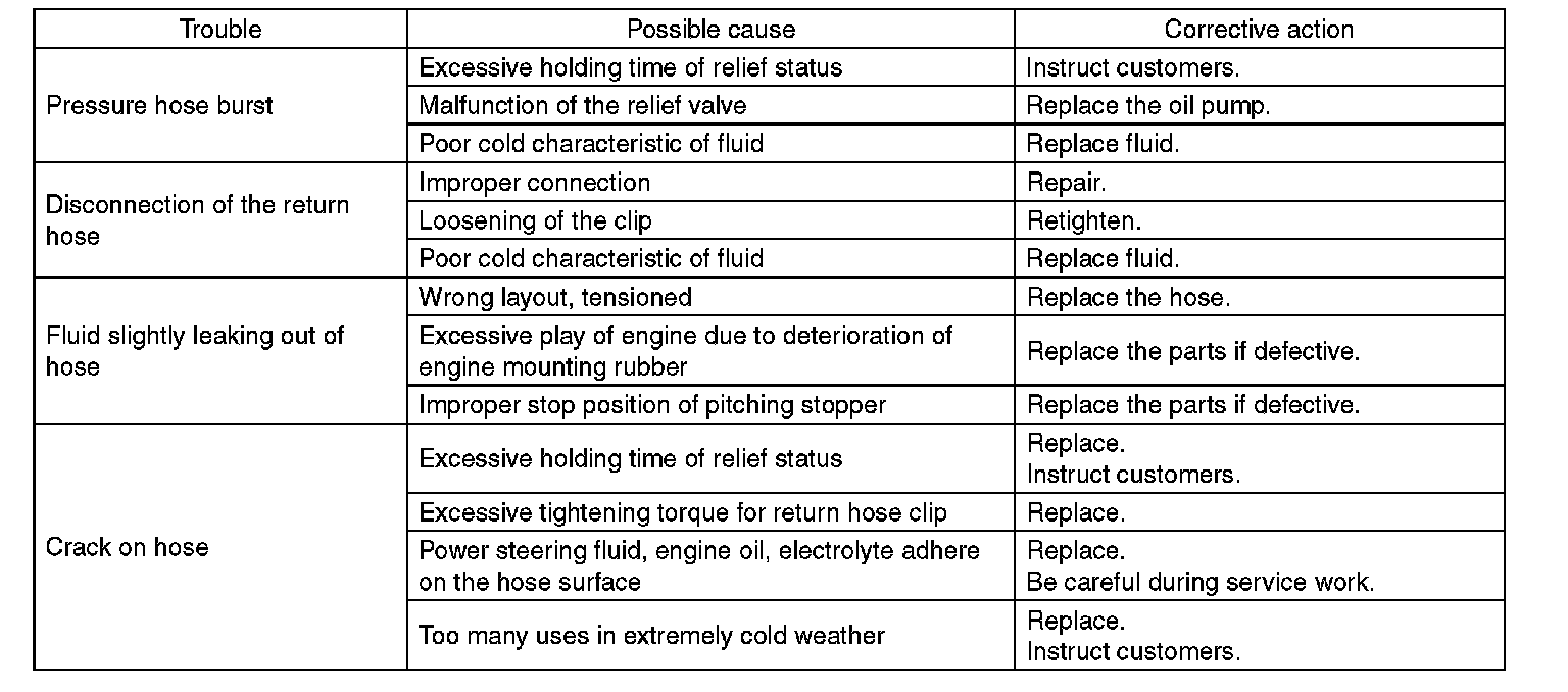 Since resistances for heat or low temperature brittleness are gradually declining according to time accumulation of hot or cold conditions for the hoses and their service lives are shortening accordingly, it is necessary to perform careful inspection frequently when the vehicle is used in hot weather areas, cold weather areas and a driving condition in which many steering operations are required in short time.