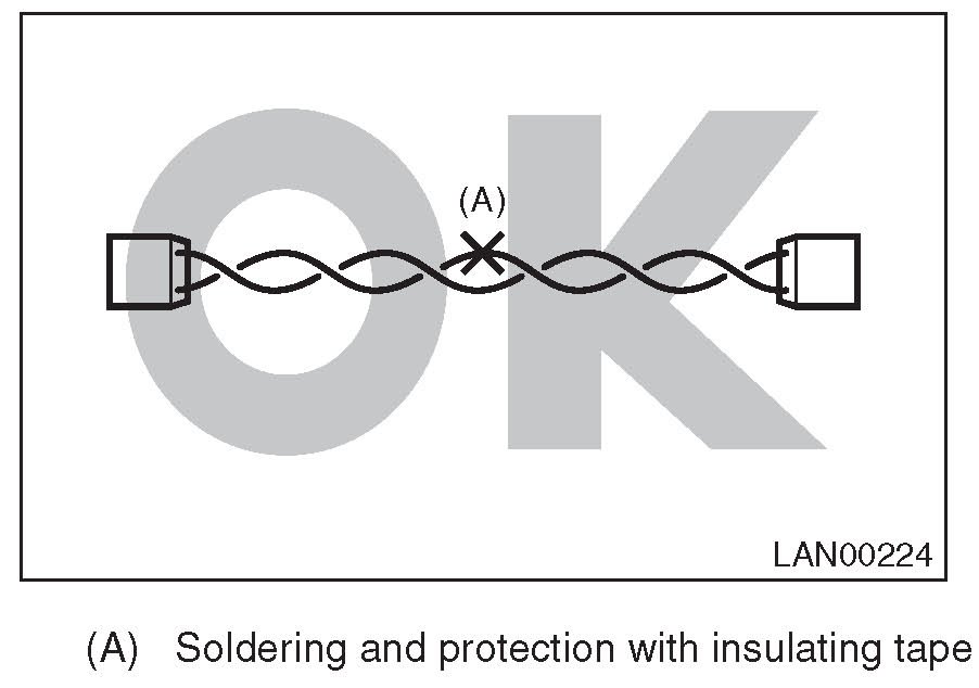 - When repairing the harness, connect the wires using soldering and protect it with insulating tape etc.