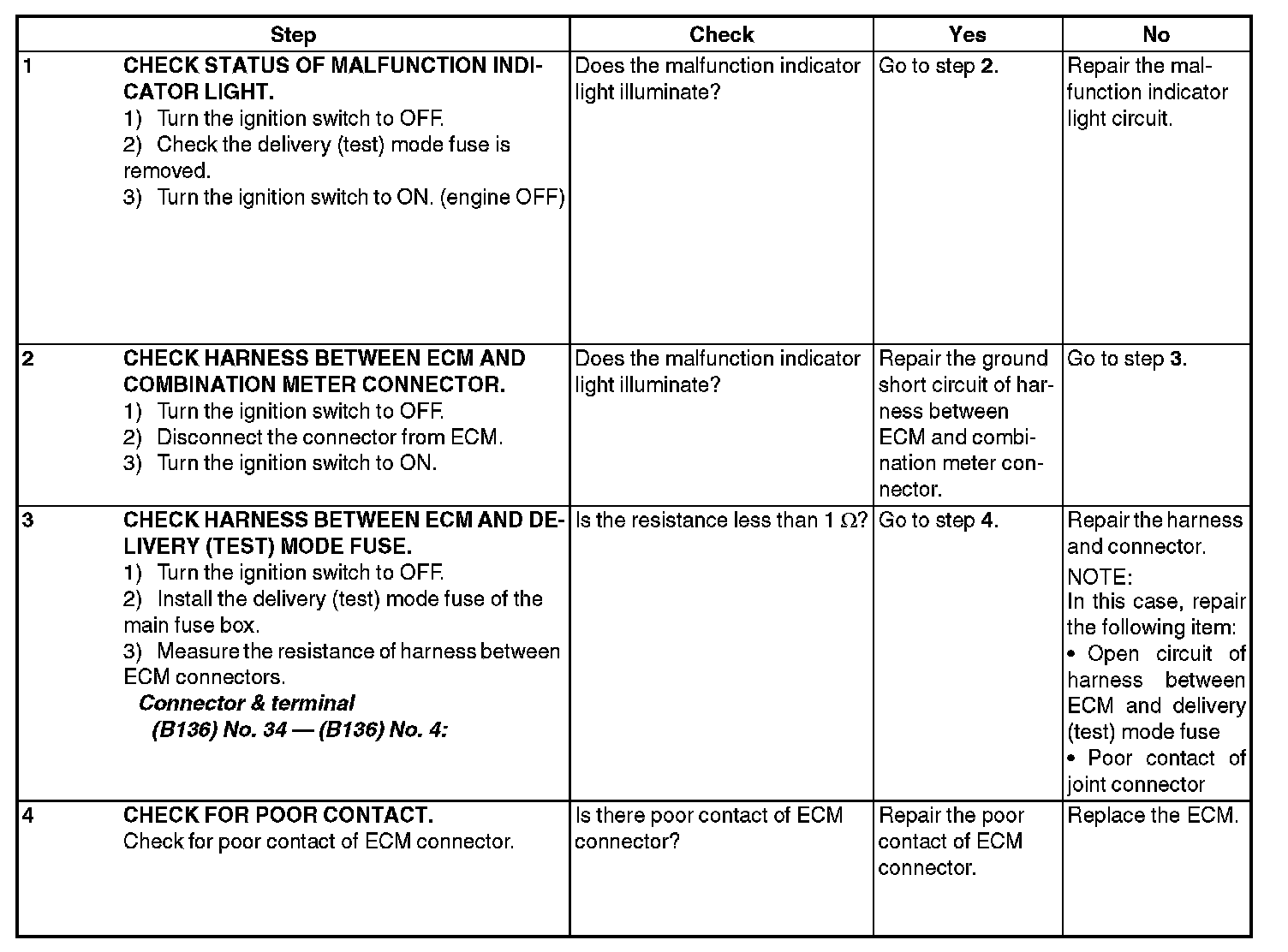 MALFUNCTION INDICATOR LIGHT DOES NOT BLINK