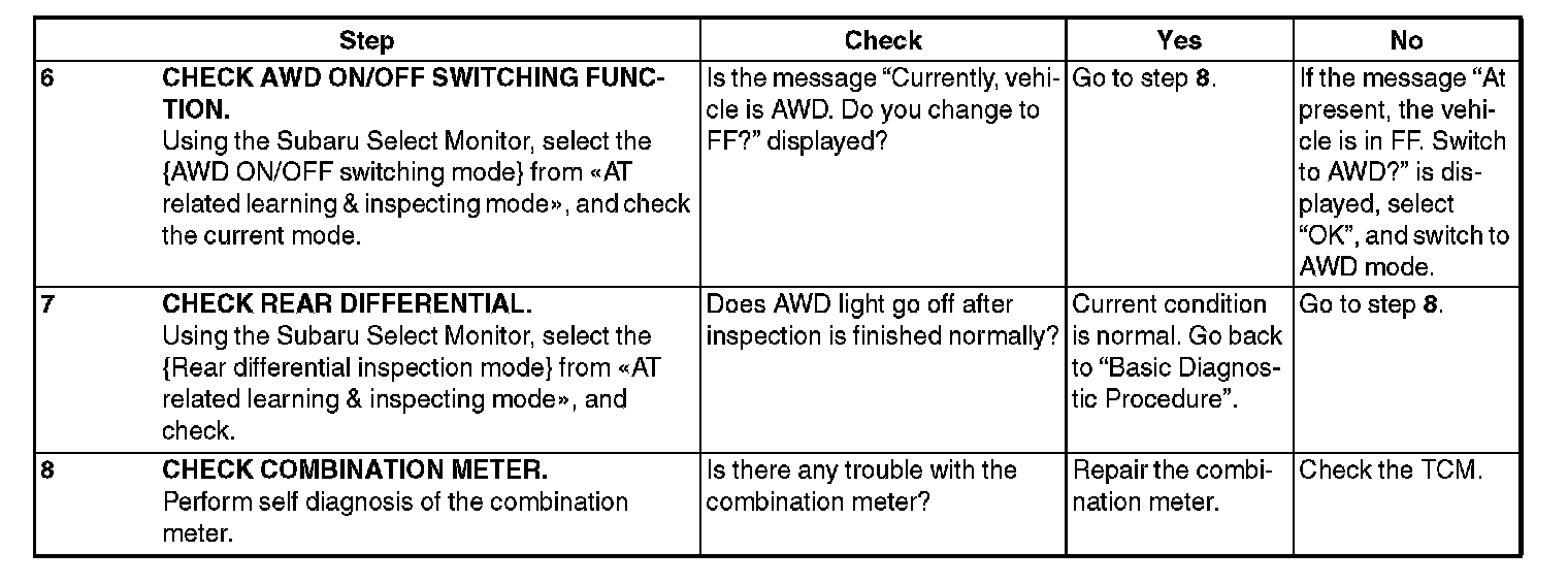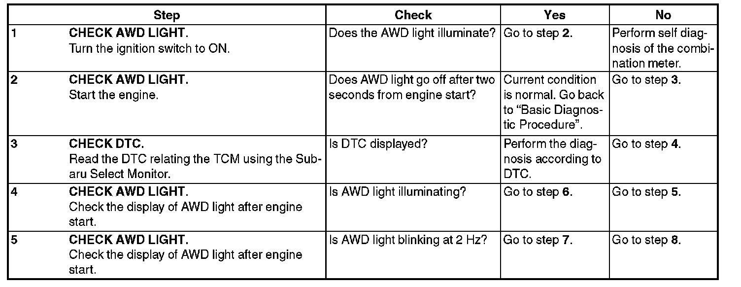 If the AWD light does not illuminate, or illumination patterns are not as above, check the AWD light circuit.