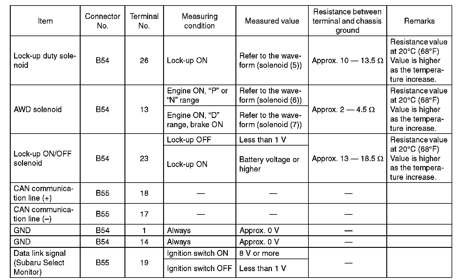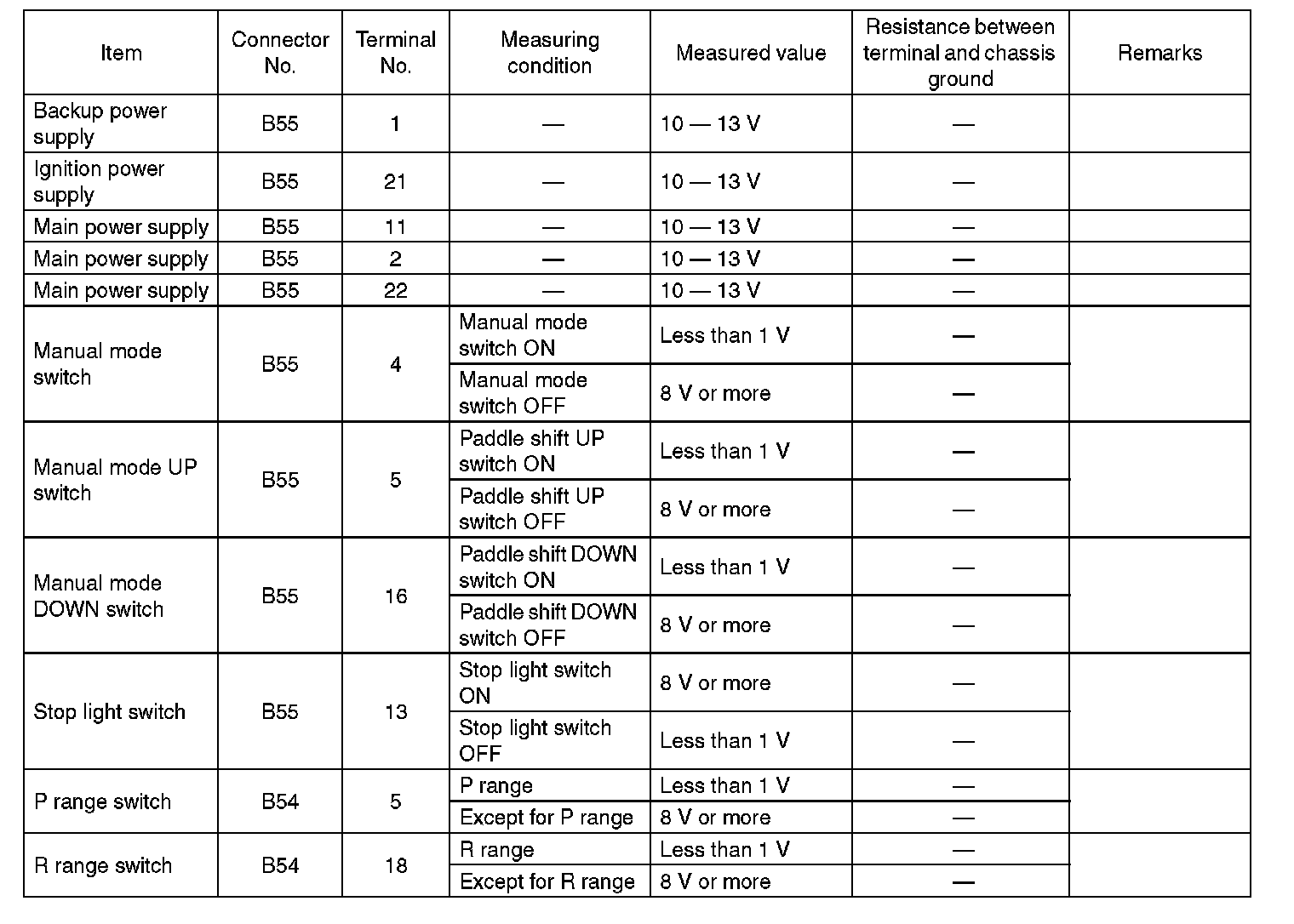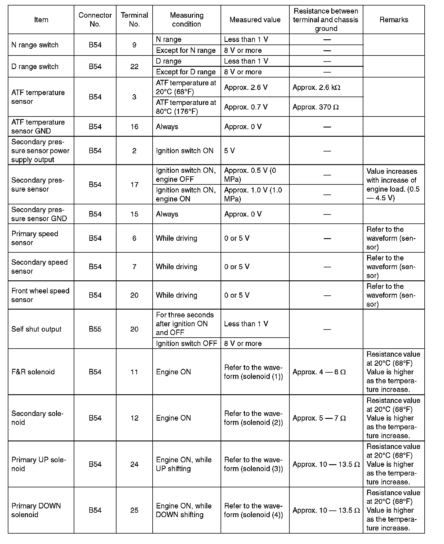 Transmission Control Module (TCM) I/O Signal Electrical Specification (Part 4):