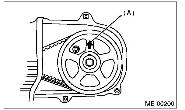 When the arrow mark (A) on cam sprocket LH is at the top position, the #1 cylinder piston is at top dead center of the compression stroke.