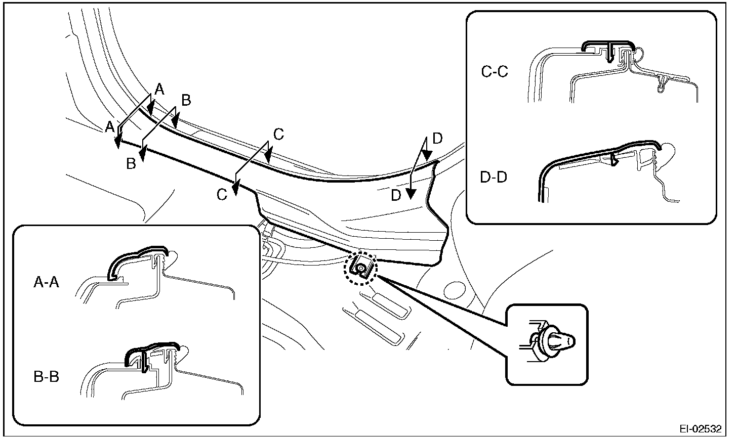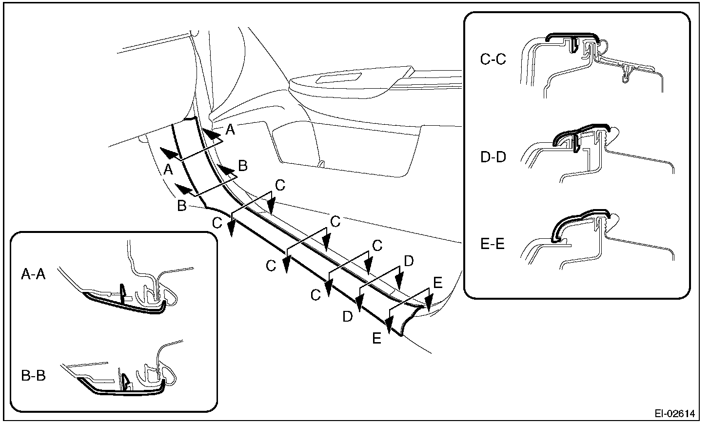 CAUTION: Do not pull with excessive force. Doing so may damage the claws of the side sill cover INN.