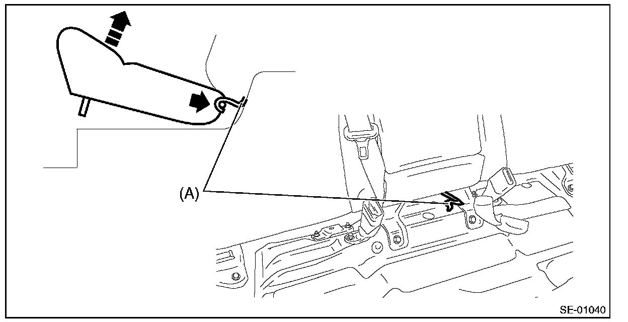 2. Remove the hook (A) by pushing it back while lifting the front side of the seat cushion, and remove the seat cushion assembly.