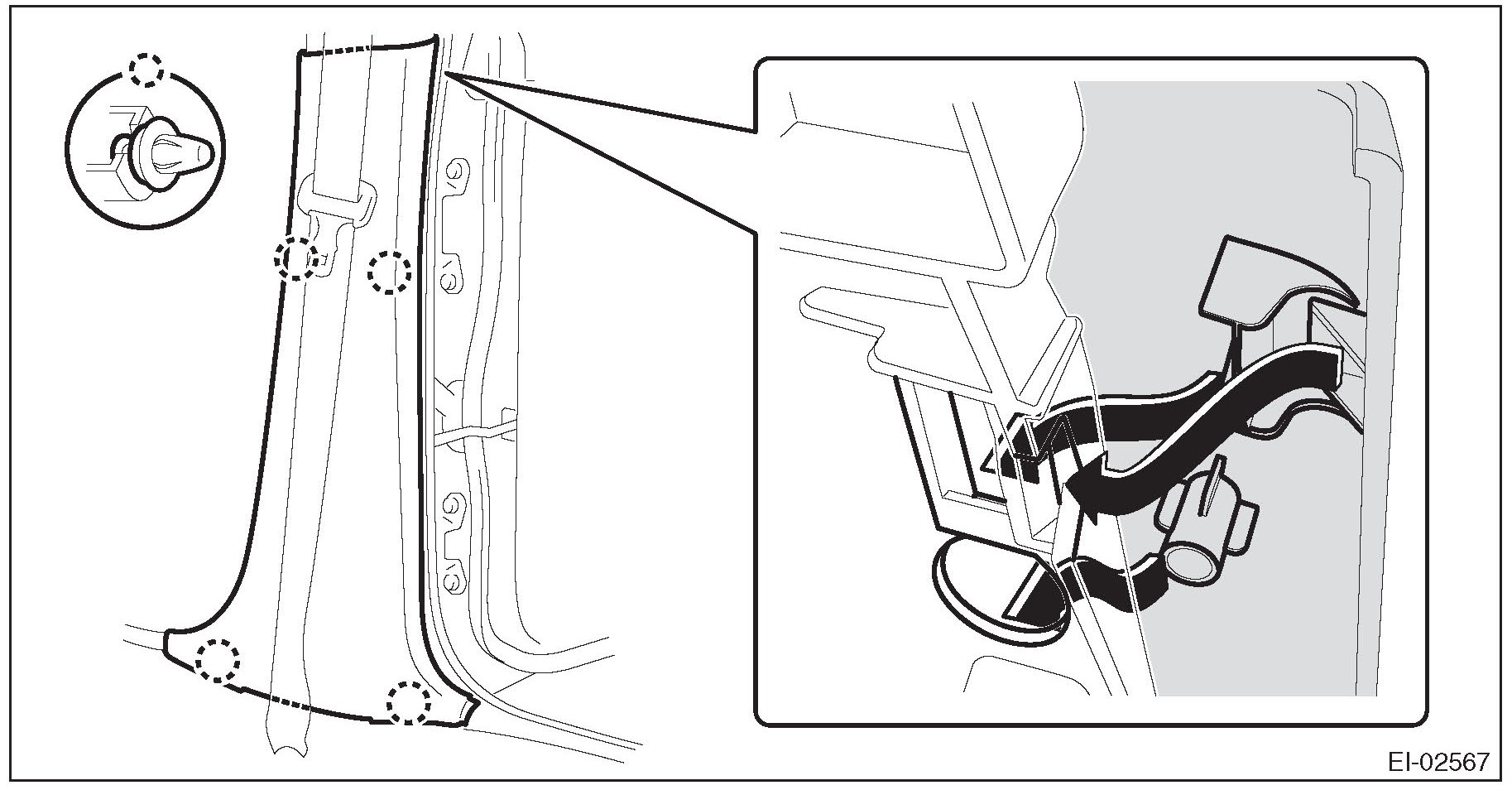 CAUTION: Do not expand the center pillar trim LWR excessively. Doing so may damage the trim.