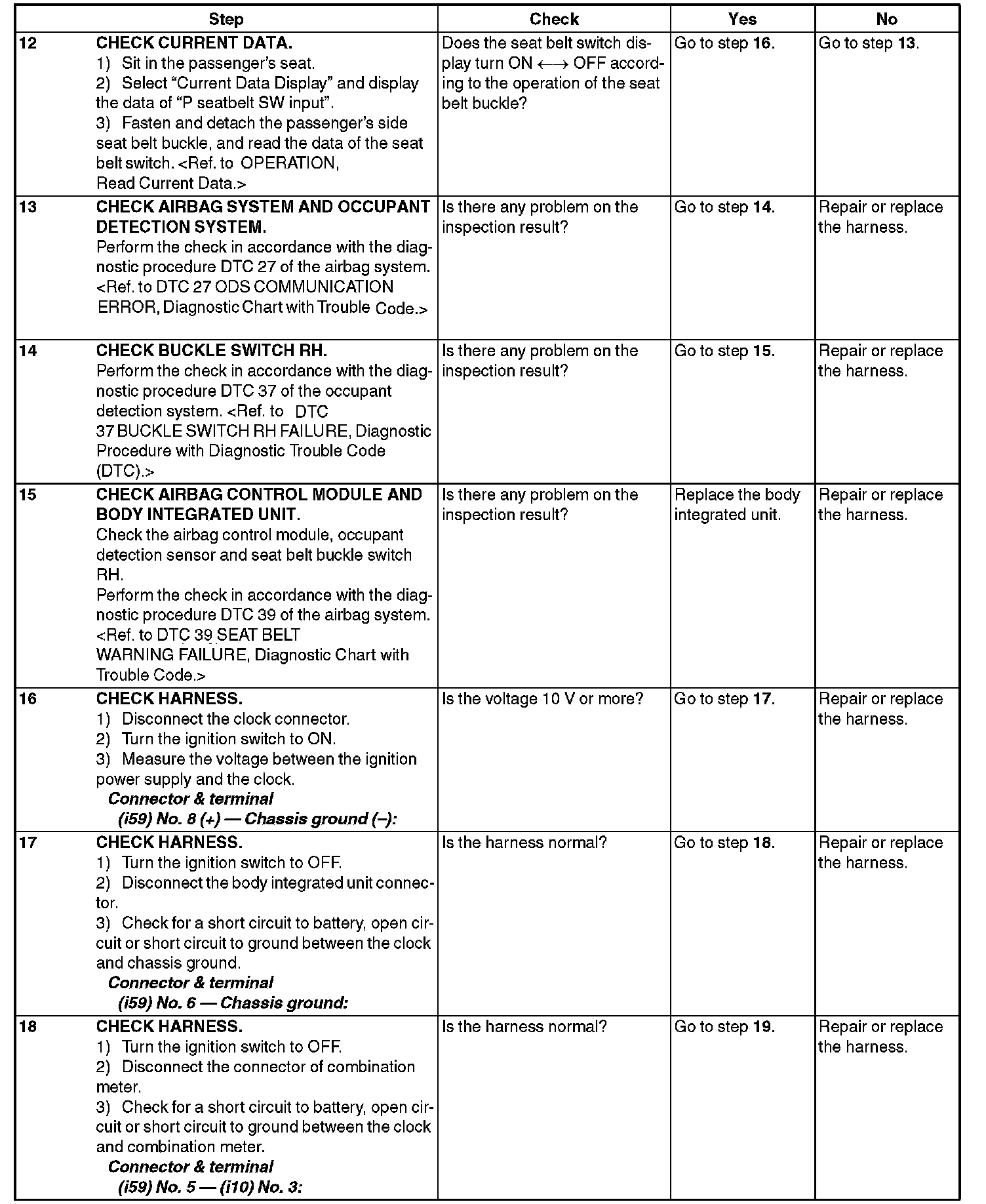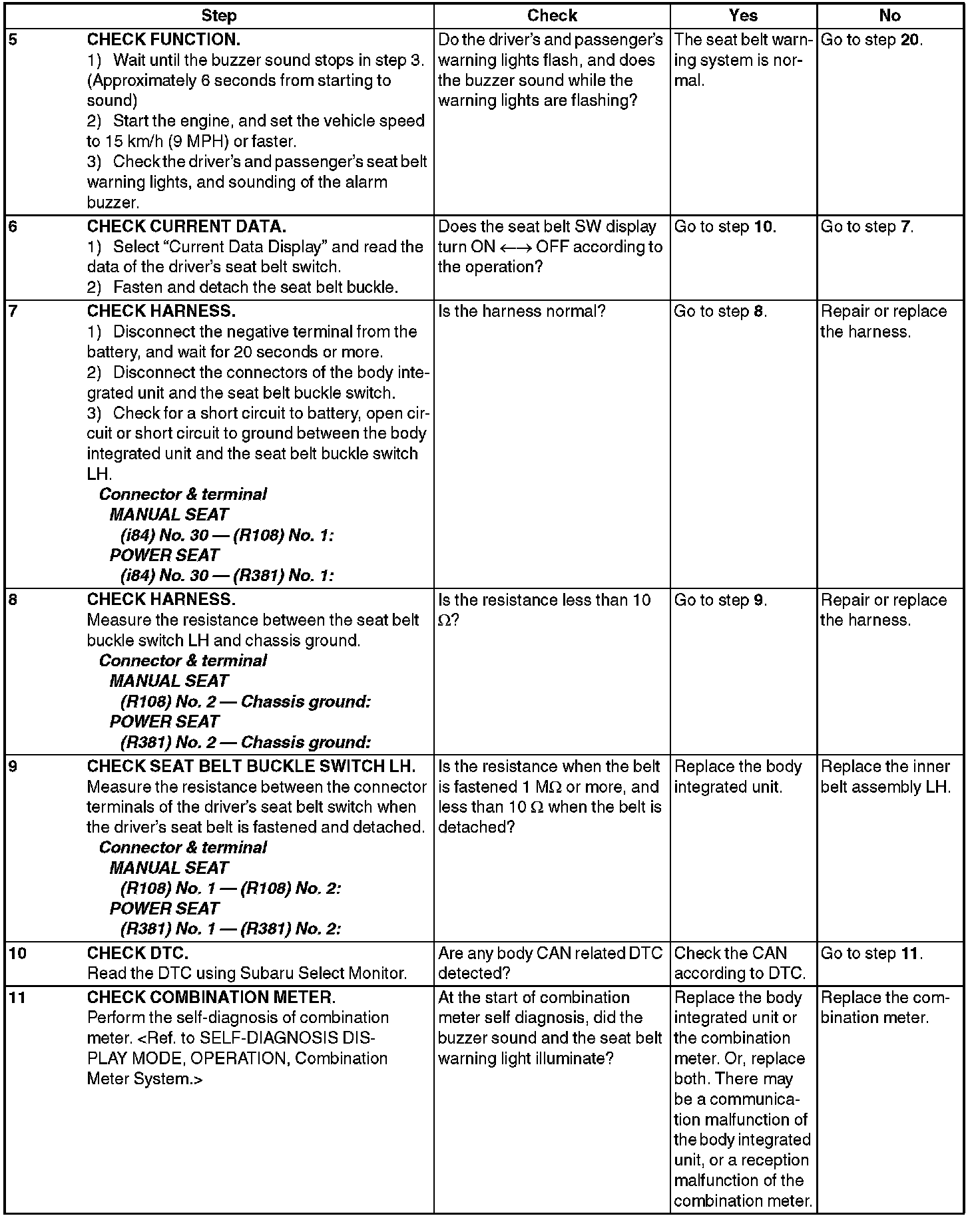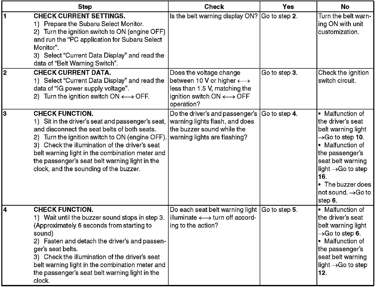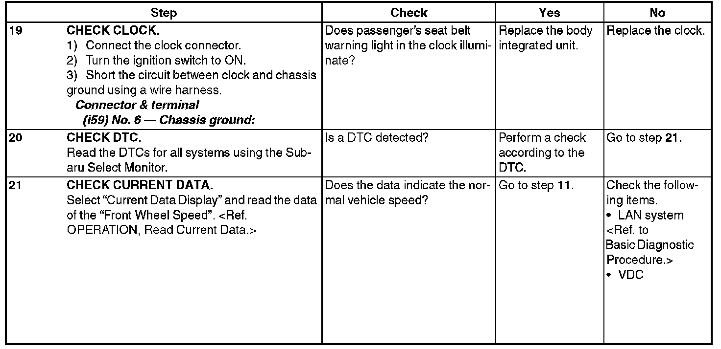 Seat Belt Warning SystemINSPECTION