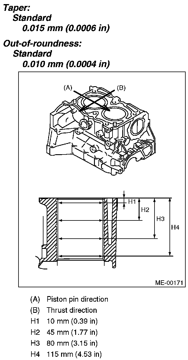 Cylinder inner diameter boring limit to 100.005 mm (3.9372 in)