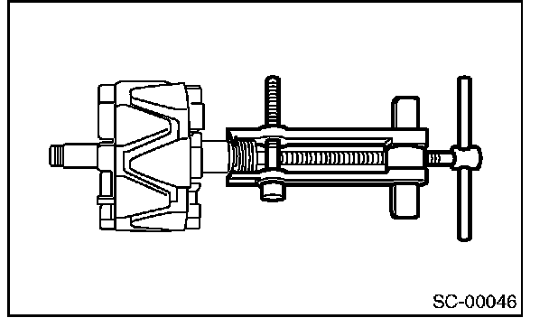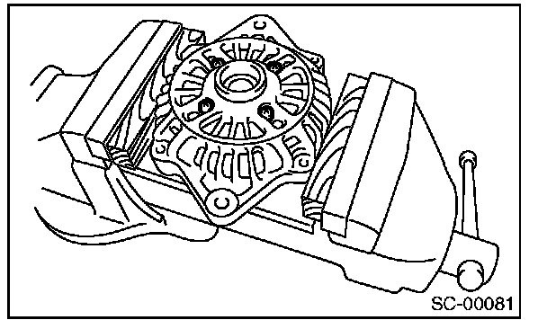 CAUTION: When holding the rotor with a vise, place aluminum plates or wooden pieces on the vise jaws to prevent rotor from damage.