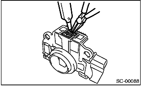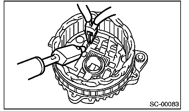 CAUTION: The rectifier is easily damaged by heat. Do not allow a 180 - 270 W soldering iron to contact the terminals for 5 seconds or more at a time.