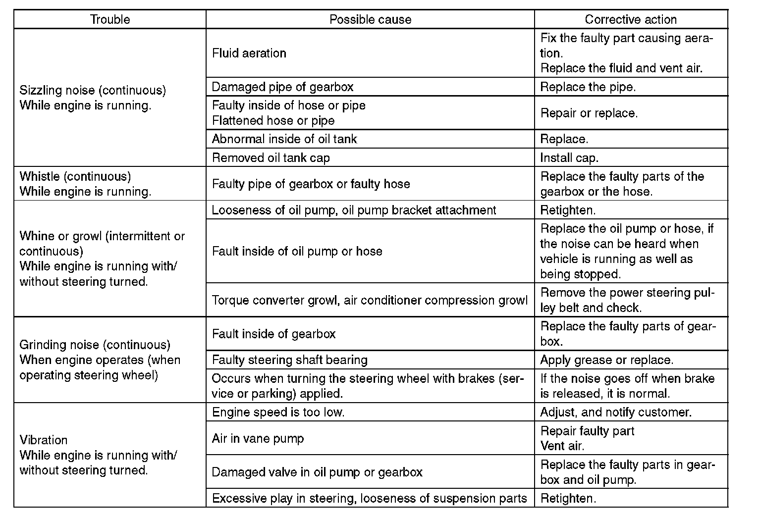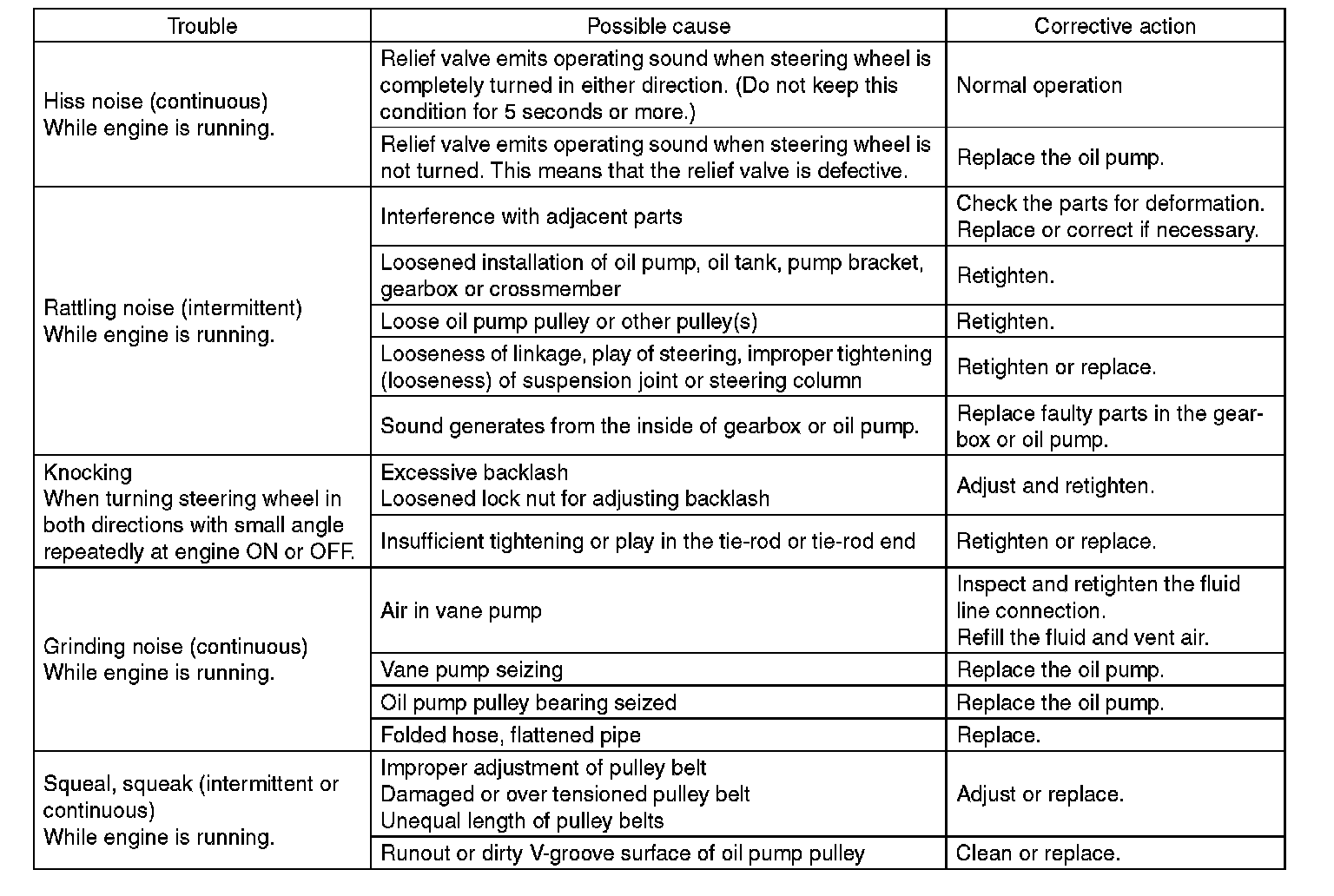 ^ The oil pump normally makes a small whining noise due to its mechanism. Even if a noise is heard when steering wheel is turned at stand still, there is no abnormal function in the system provided that the noise eliminates when the vehicle is driving.