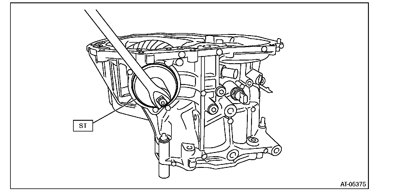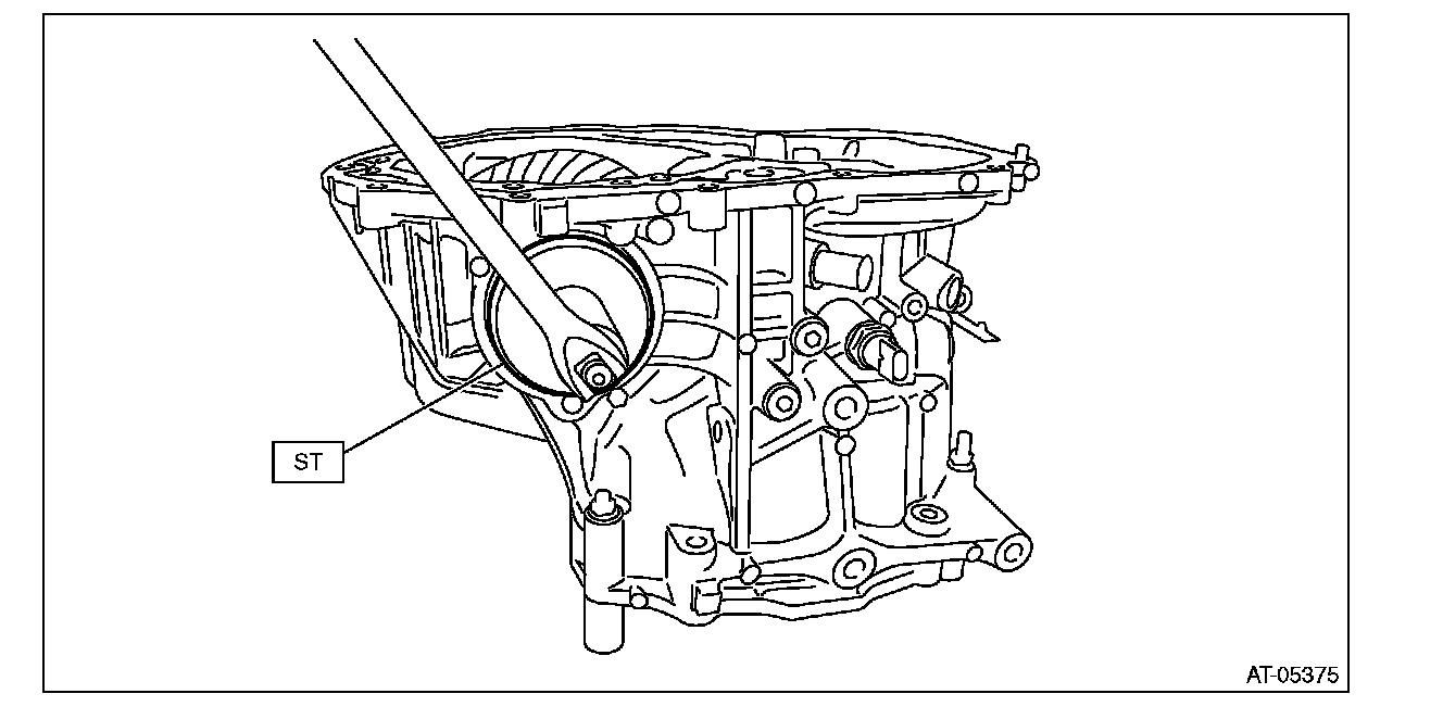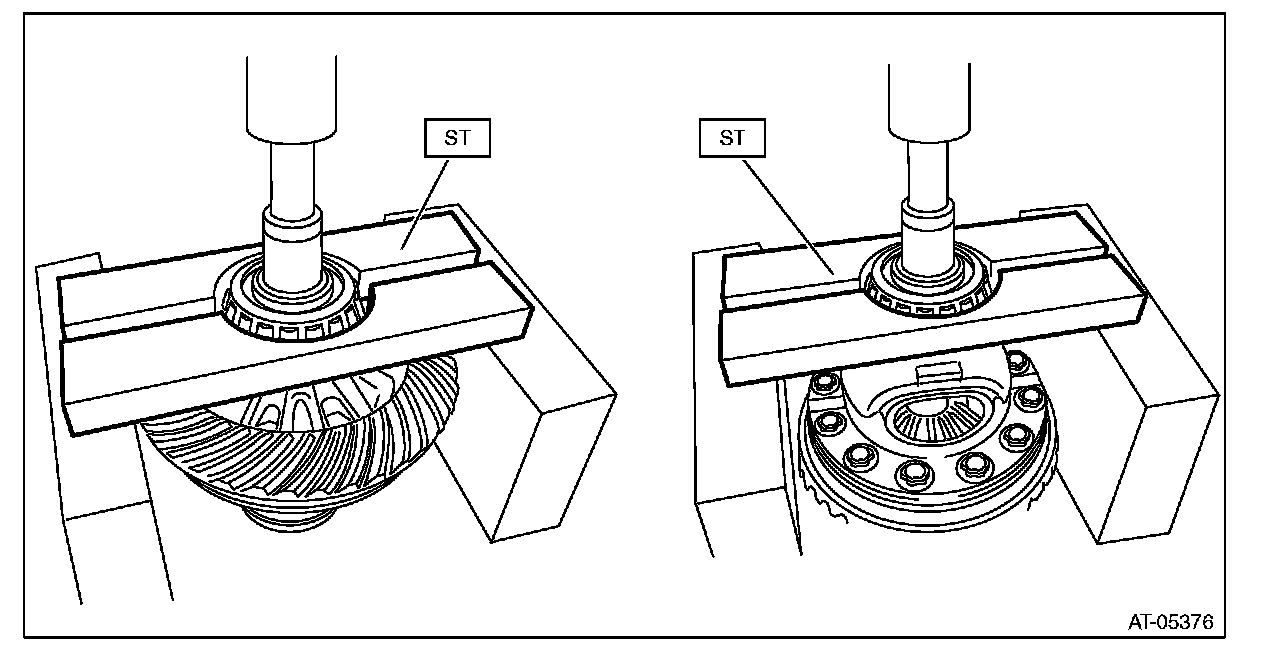 6) Using the ST, install the hypoid driven gear by tightening the installation bolt.