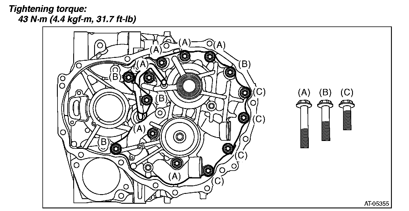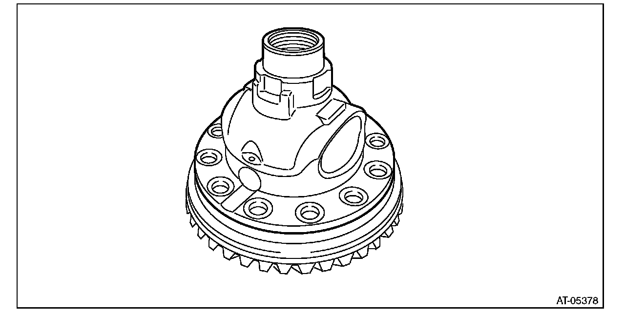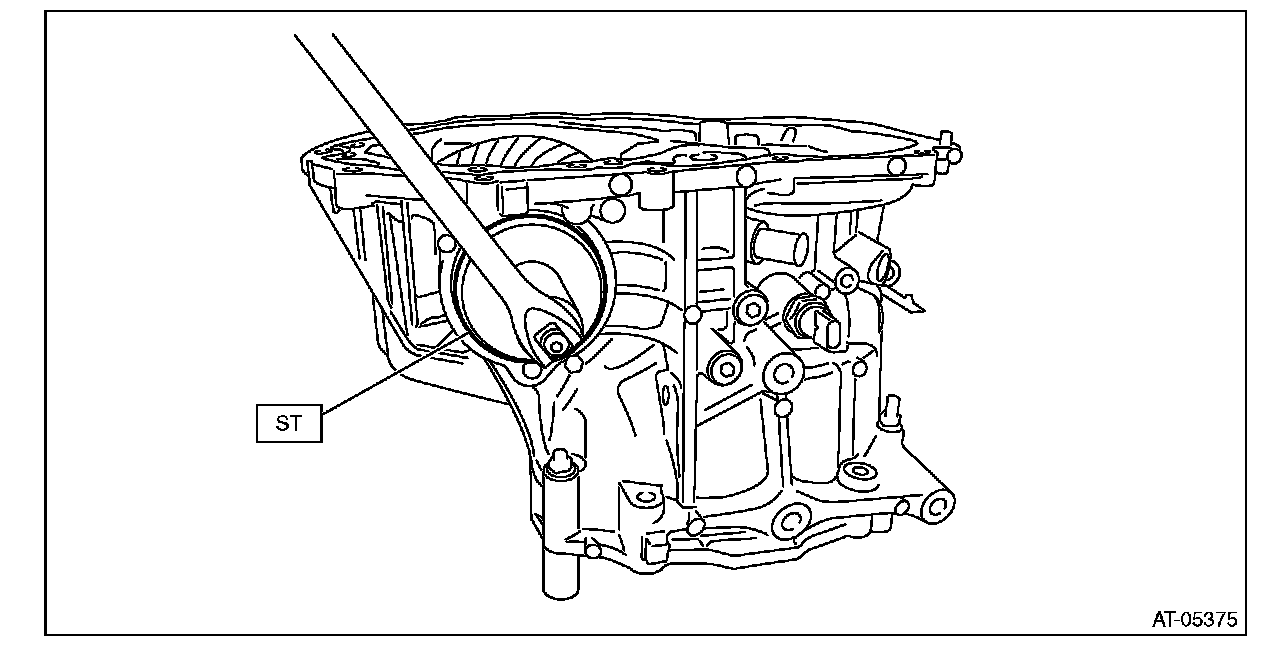 ^ Support the differential case assembly by hand to avoid damaging the retainer mounting hole of the converter case.