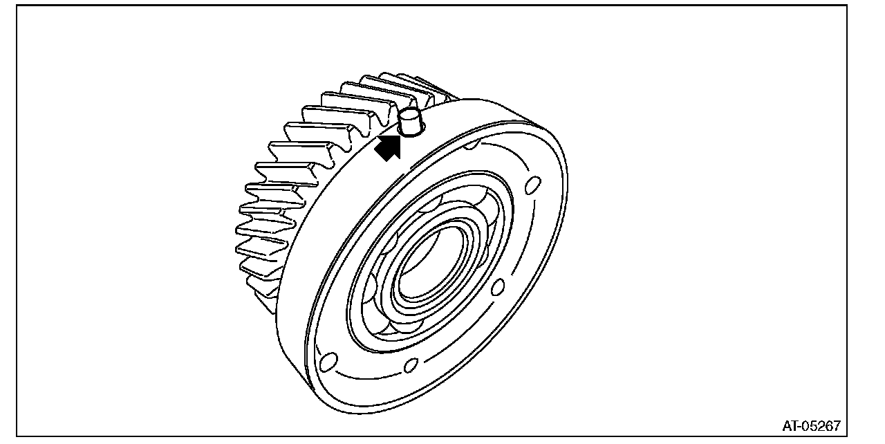 2) Fit the straight pin portion to the recess portion of transmission case and install the reduction driven gear and install the snap ring.