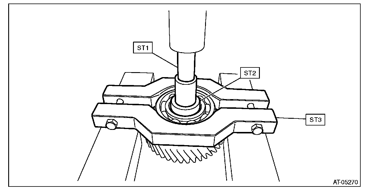 1) Remove the bearing retainer using ST1, ST2 and ST3.