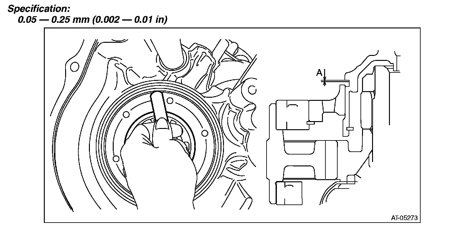 ^ Check the clearance between snap ring and transmission case and replace the snap ring as necessary.