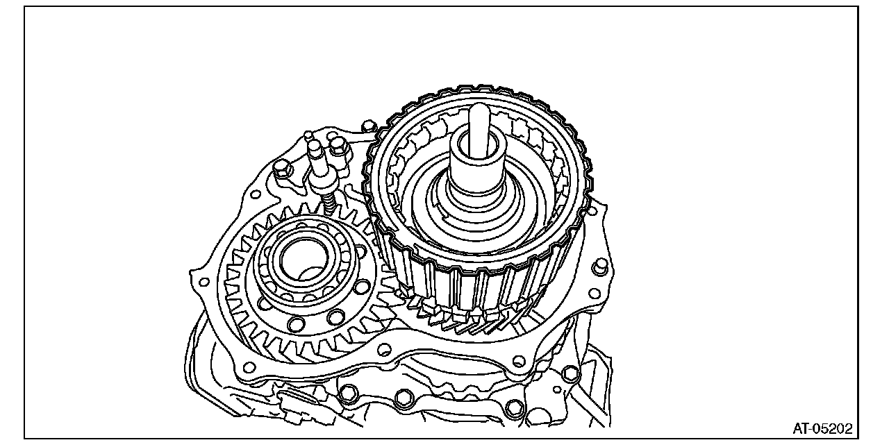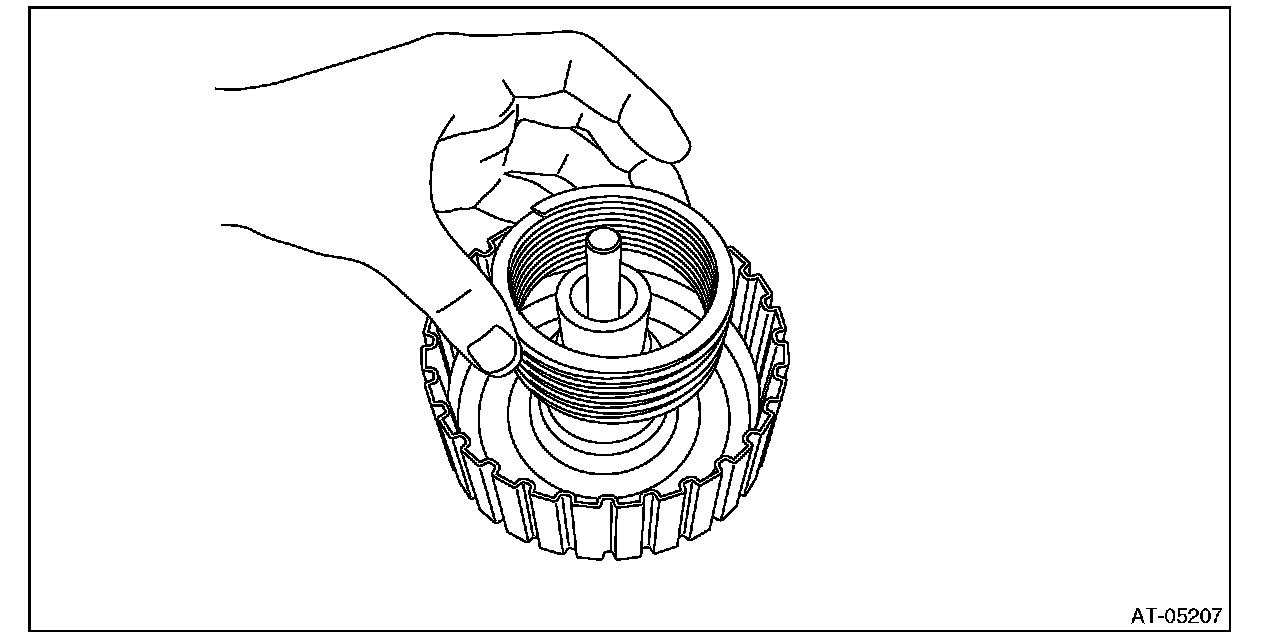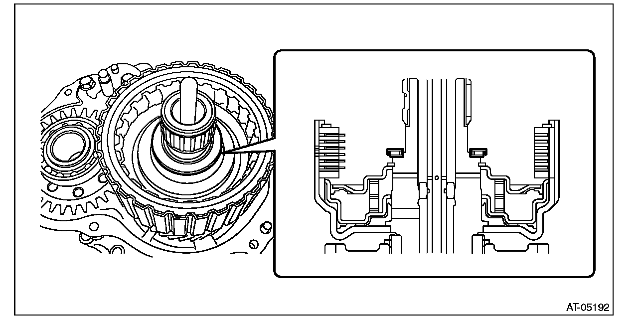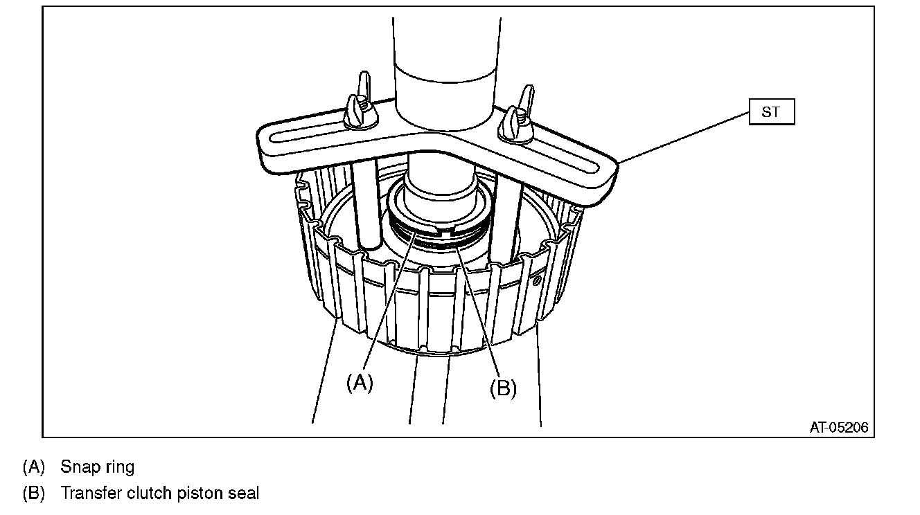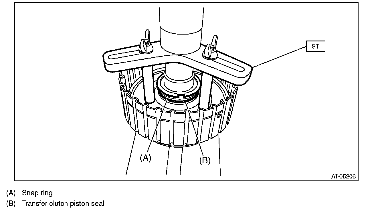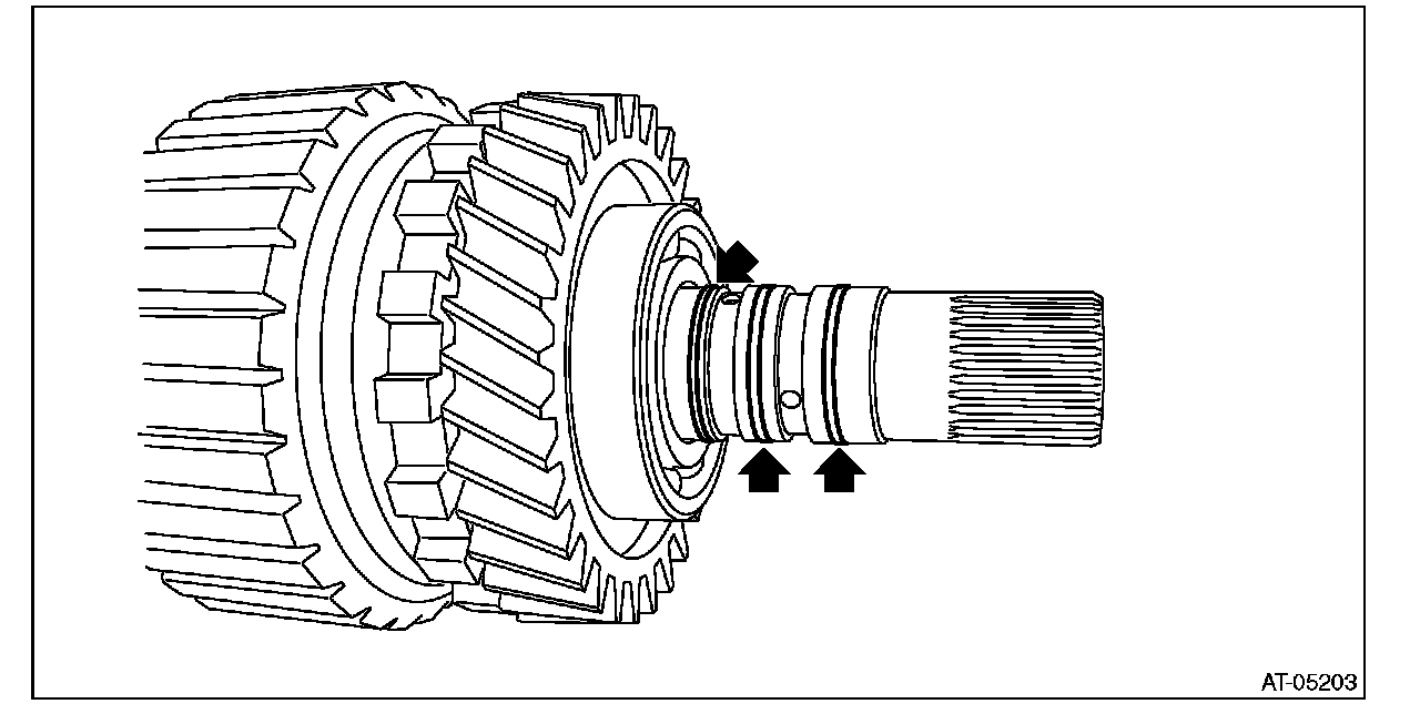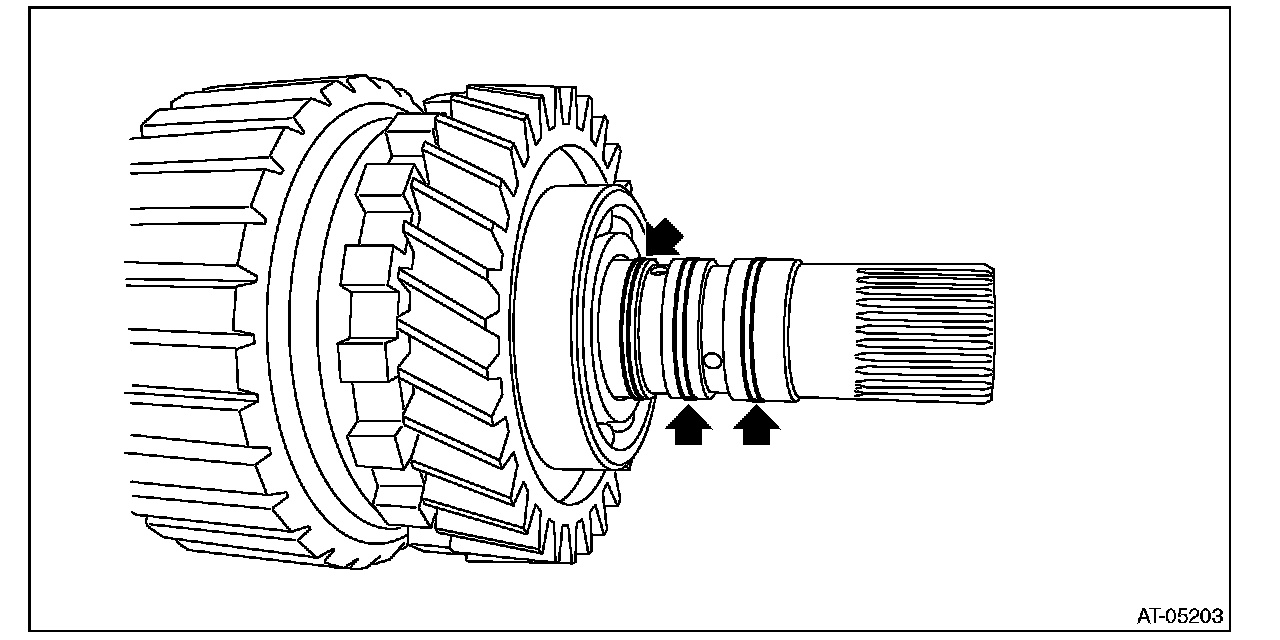5) Attach the transfer clutch piston to the reduction drive gear shaft.