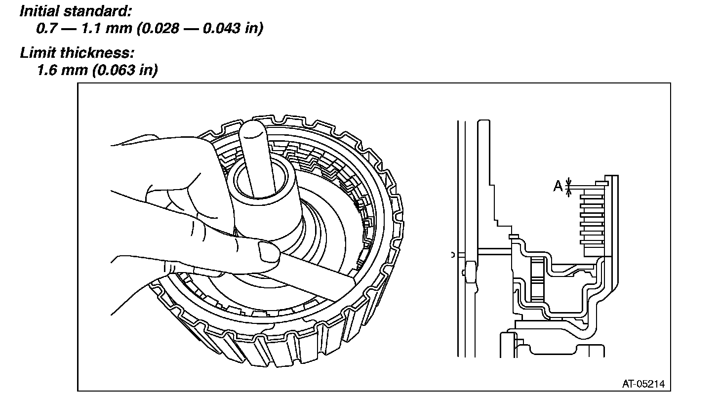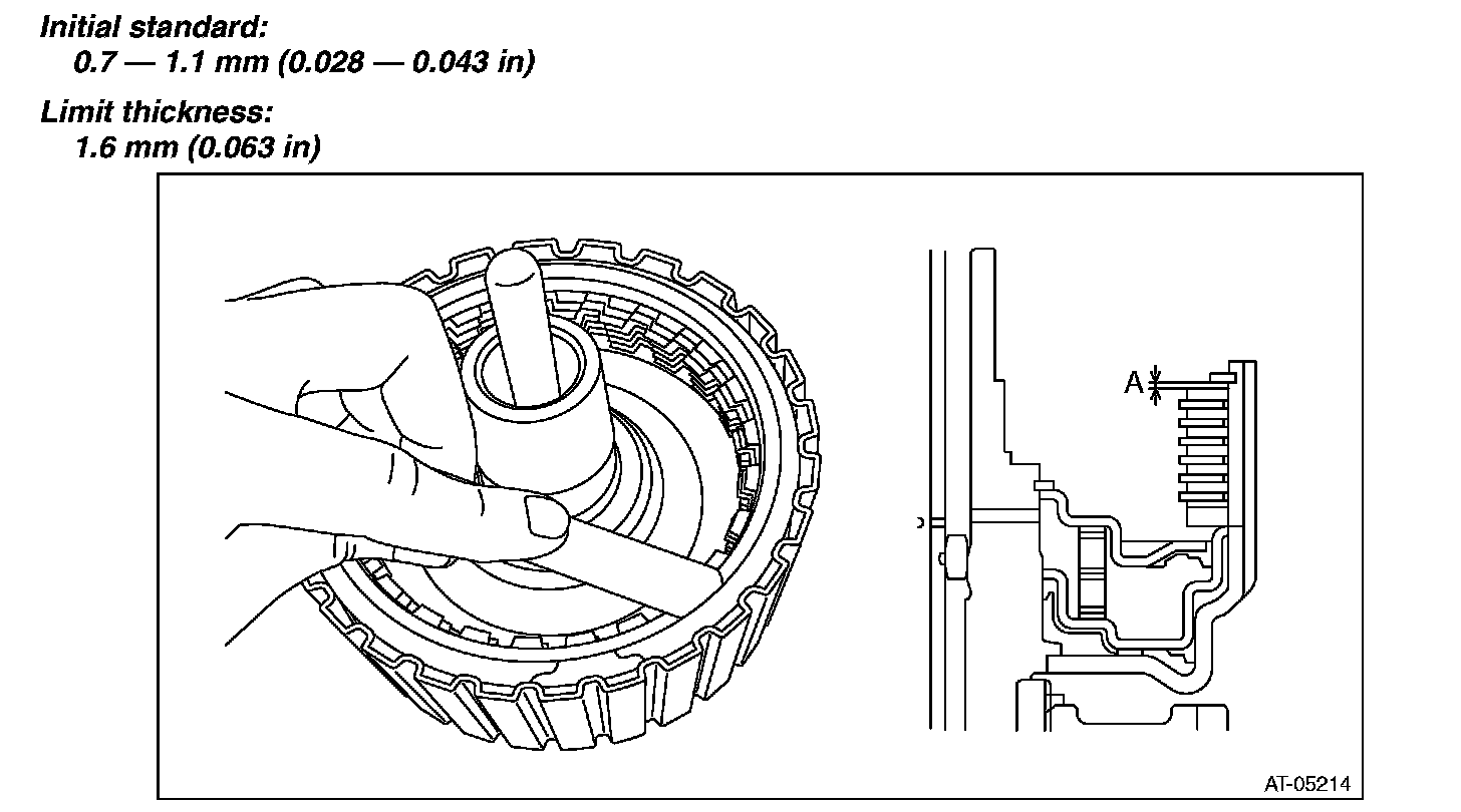 11) When clearance "A" exceeds the limit for use, replace the drive plate and driven plate as a set, and select and adjust the pressure plate within the initial specified value.