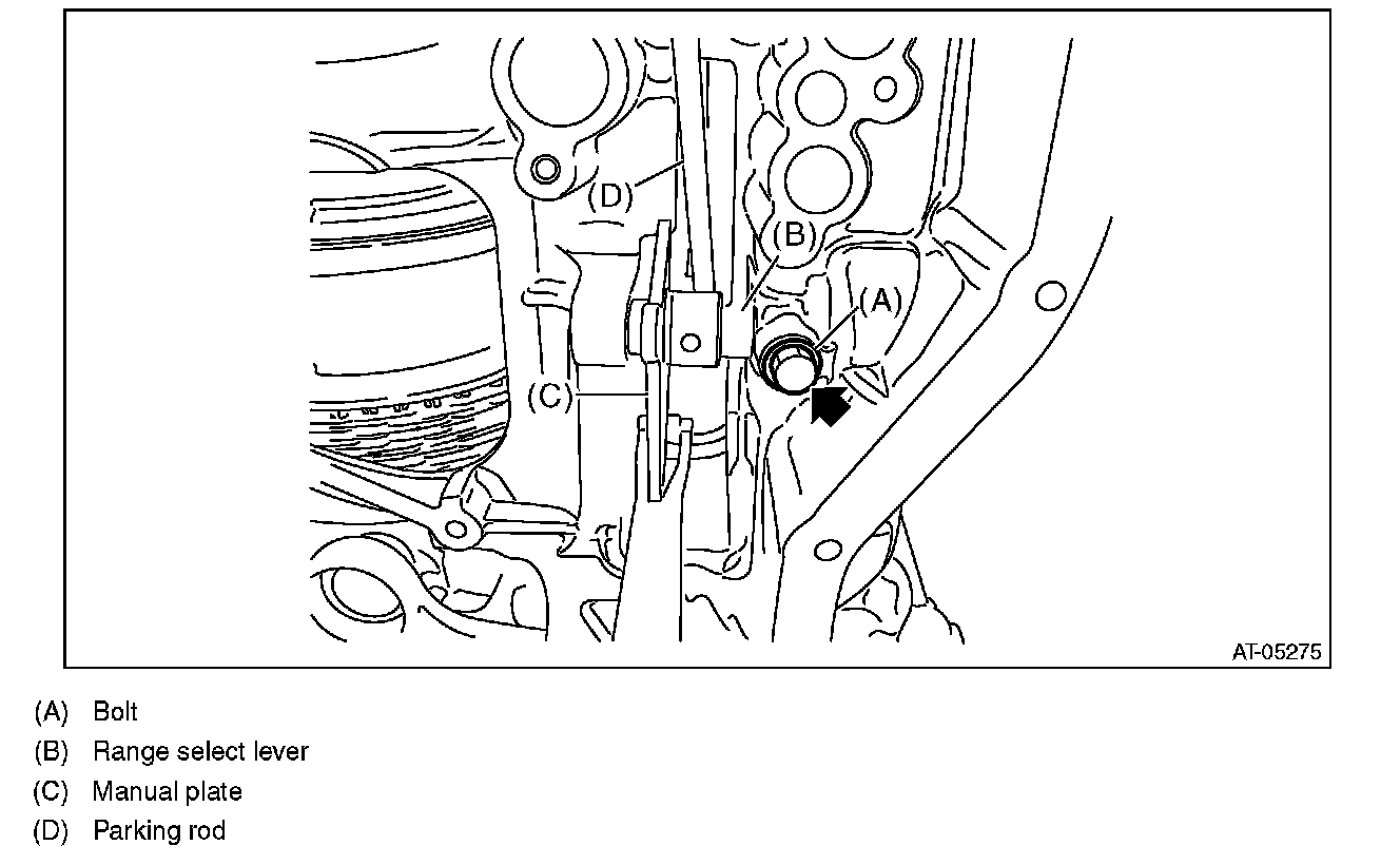 2) Install the manual plate, parking rod, range select lever and bolt.
