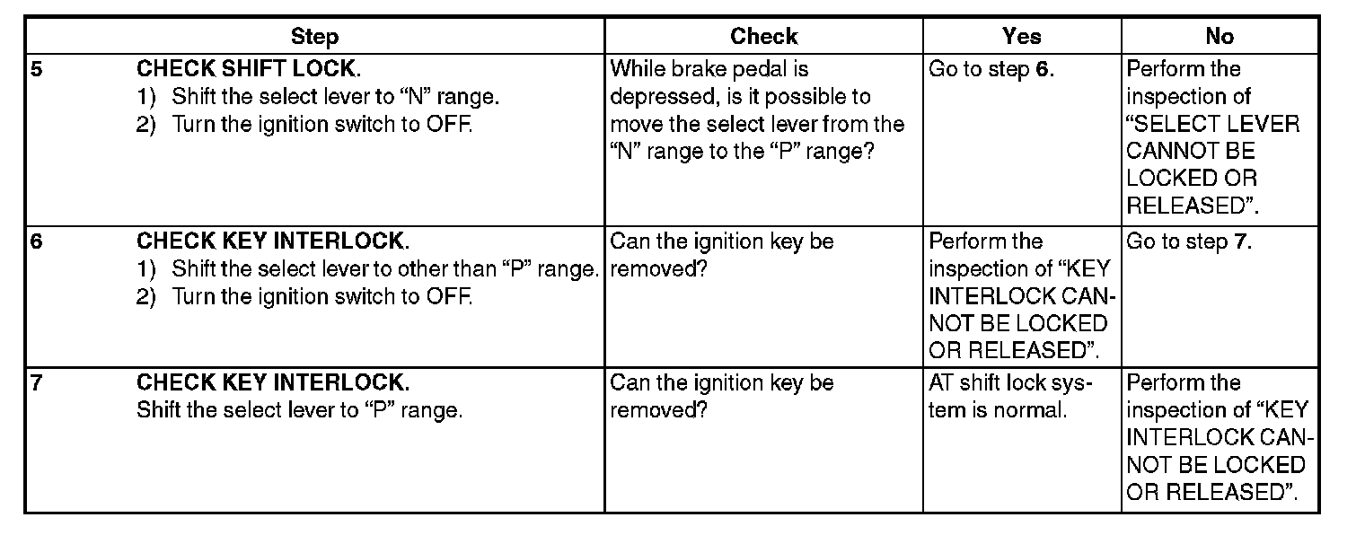 SHIFT LOCK OPERATION