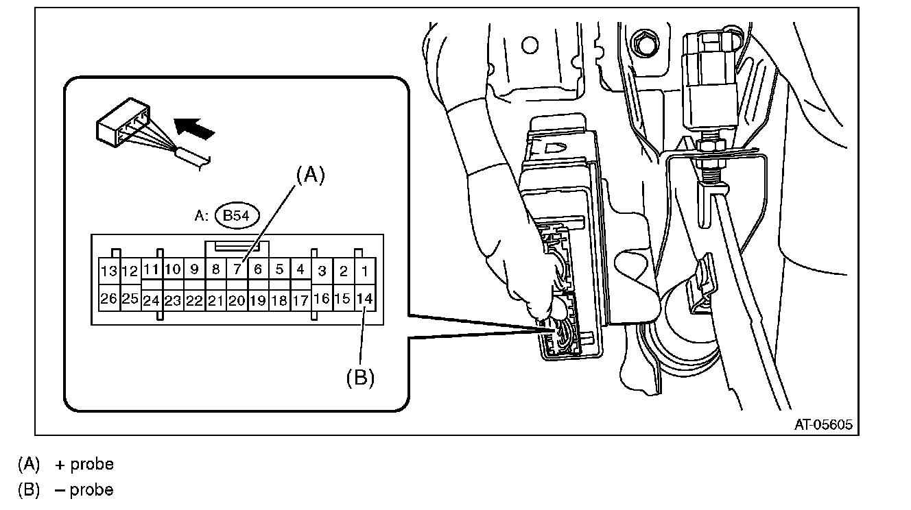 2) Set the probe of oscilloscope to TCM harness connector.