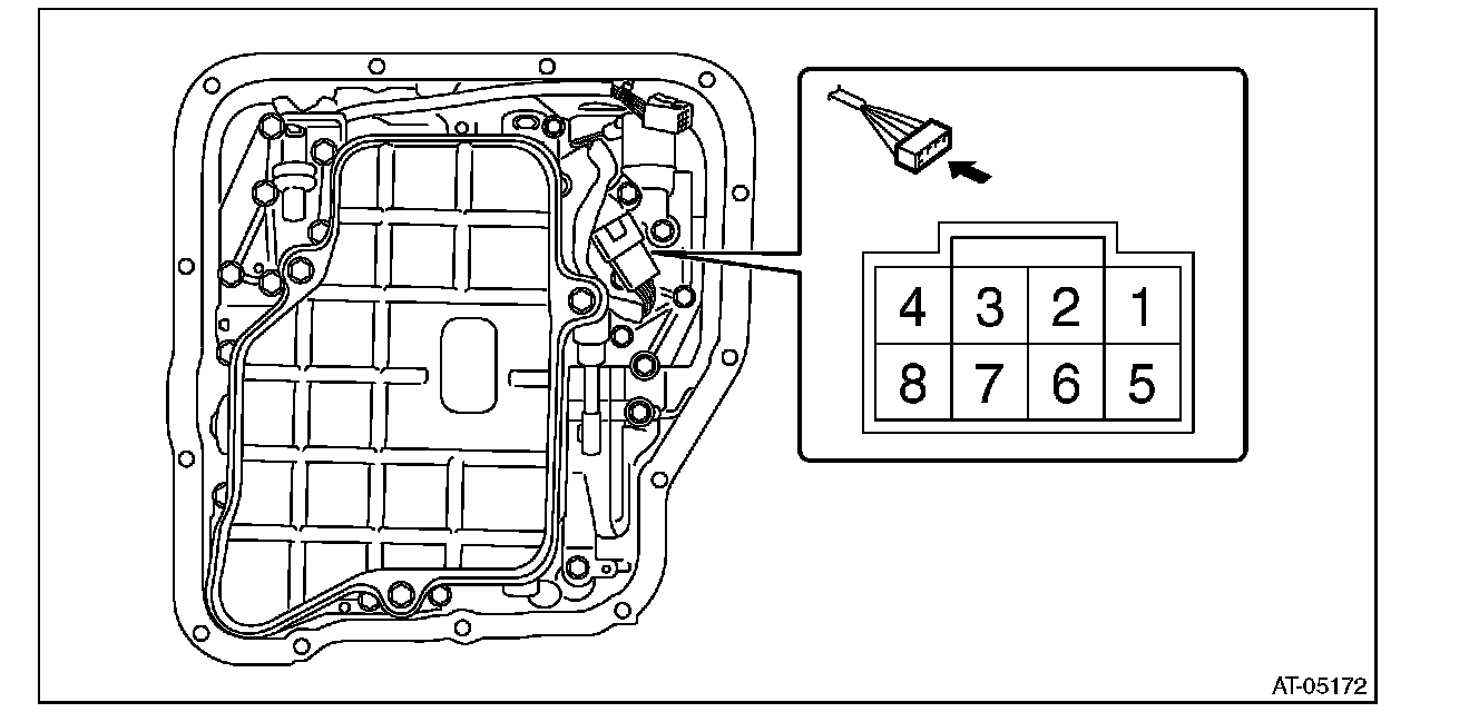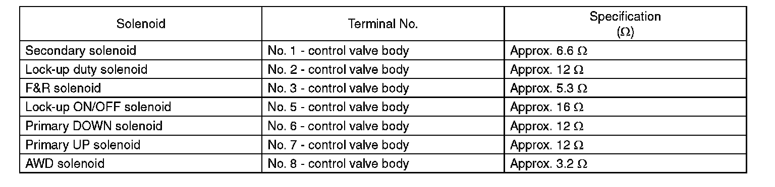 ^ Check oil strainer for clogging. Measure the resistance of each solenoid.