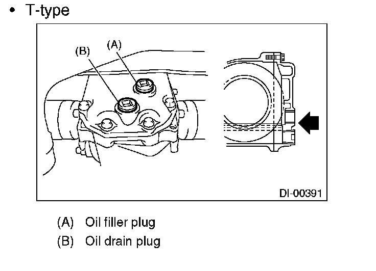 ^ For the T-type, apply liquid gasket to the oil filler plug.
