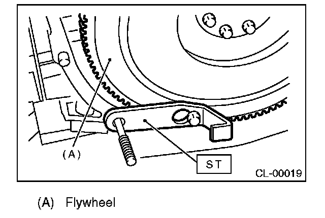 2) Tighten the flywheel mounting bolts to the specified torque.