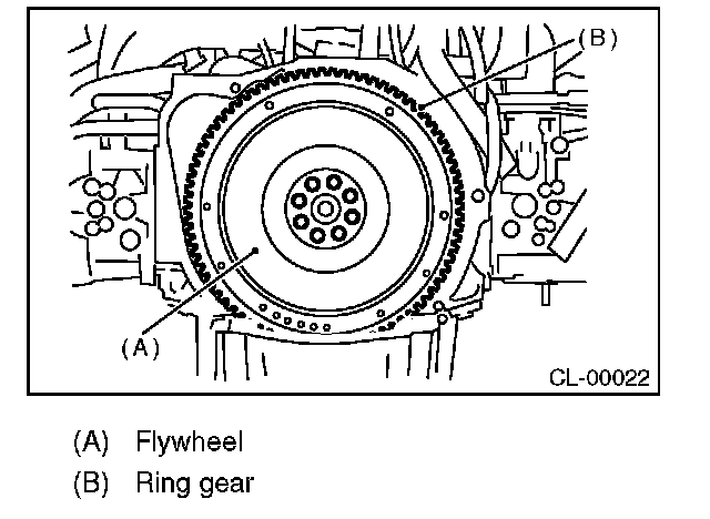 1) If there is damage or defectiveness in the facing sliding surface or ring gear, replace the flywheel.