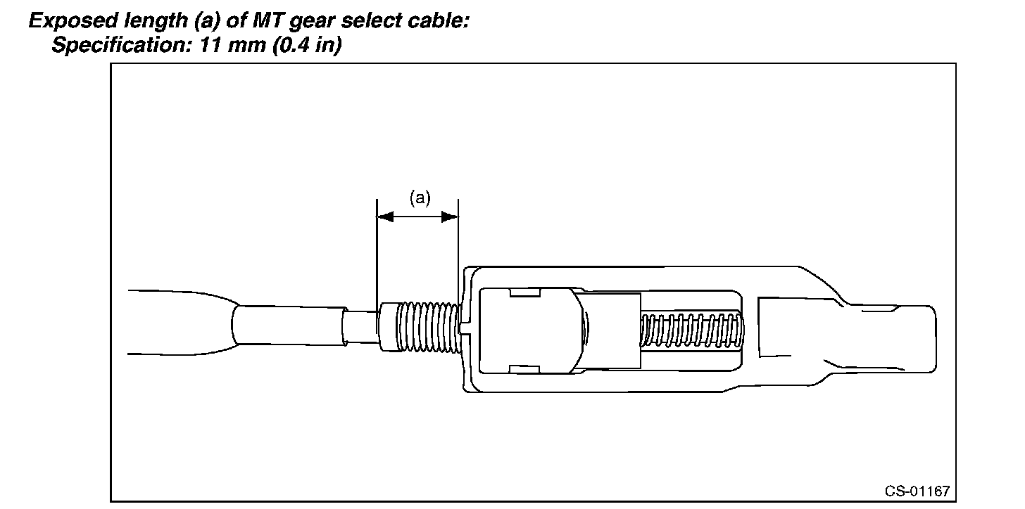 Check that exposed length (a) of MT gear select cable is within specification.