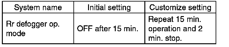CAUTION: Check whether the "Rr defogger op. mode" setting is in initial setting or customize setting before performing inspection.