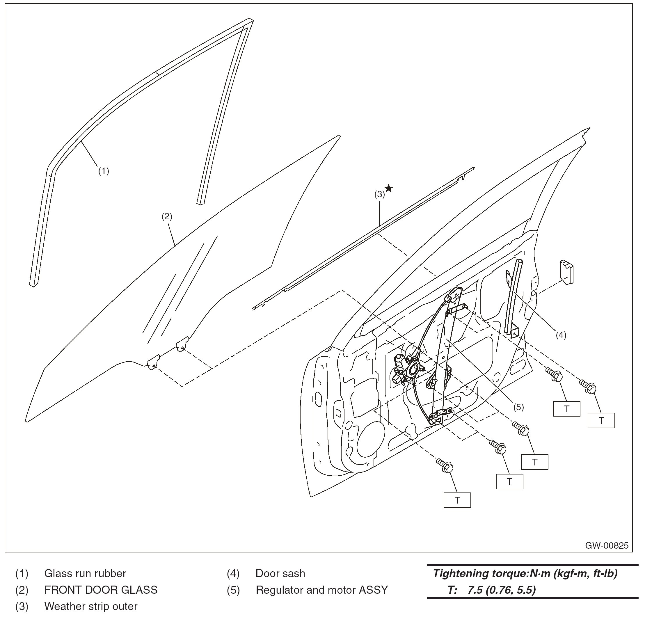 Tightening torque: Refer to "COMPONENT" of "General Description". [Ref. to FRONT DOOR GLASS, COMPONENT, General Description.>