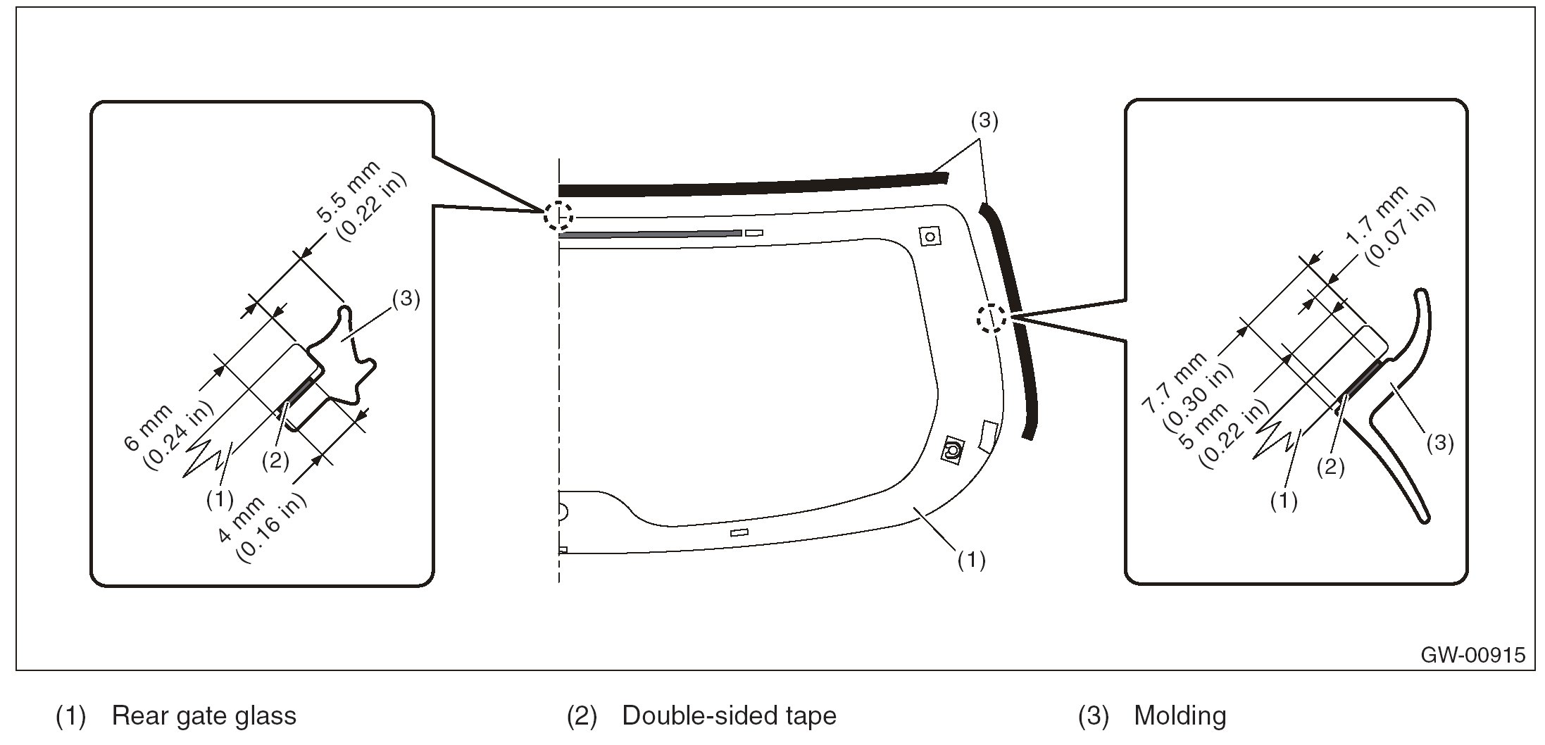 6. Remove the rear gate in the same procedure as for windshield glass.