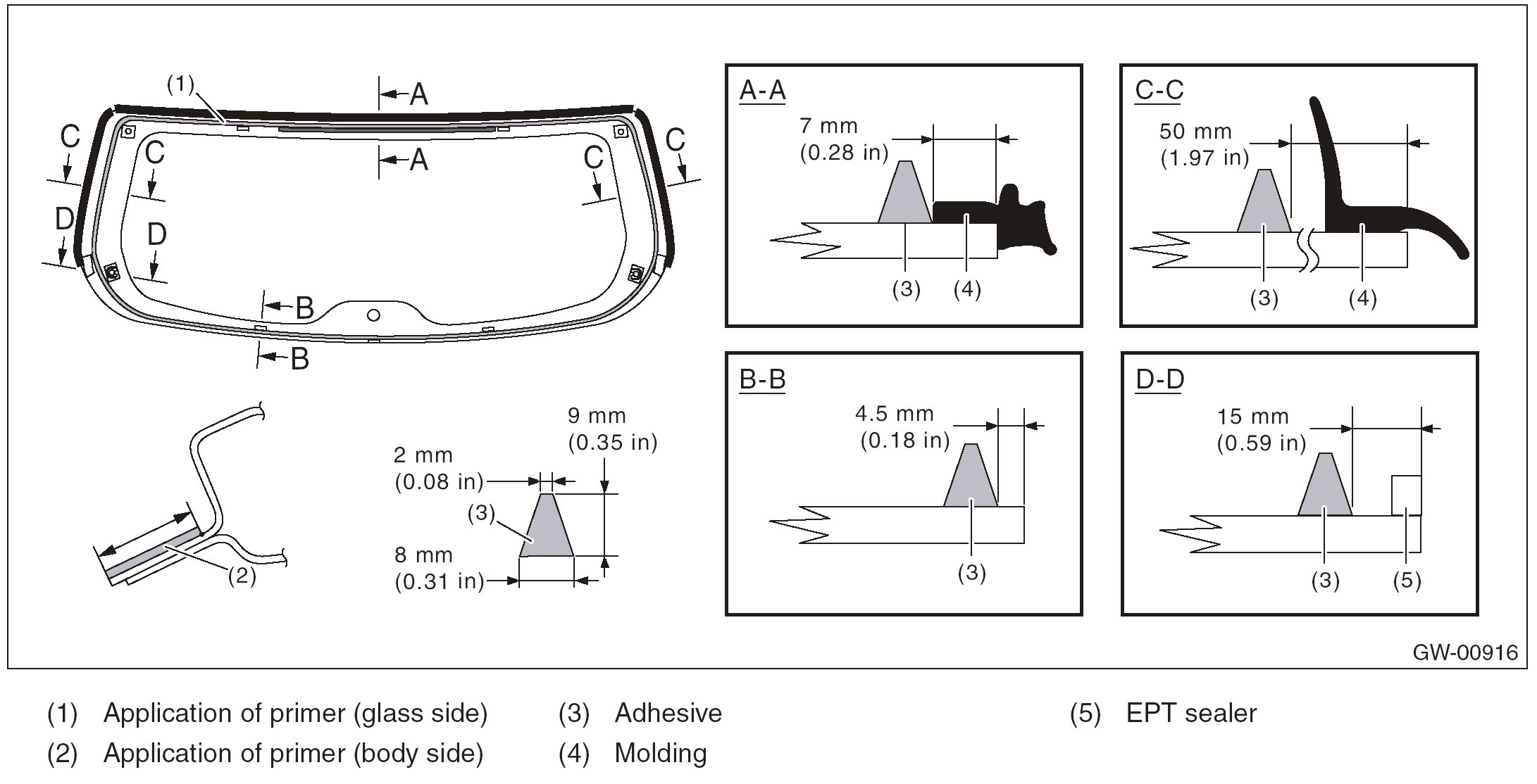 2. Prepare and clean the adhesion surfaces of the glass and body using the same procedures as for the windshield glass.