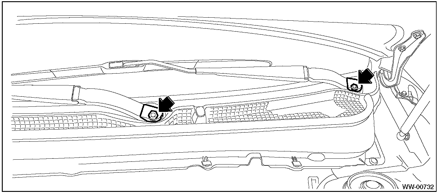 2. Remove the nuts, and remove the front wiper arm assembly.