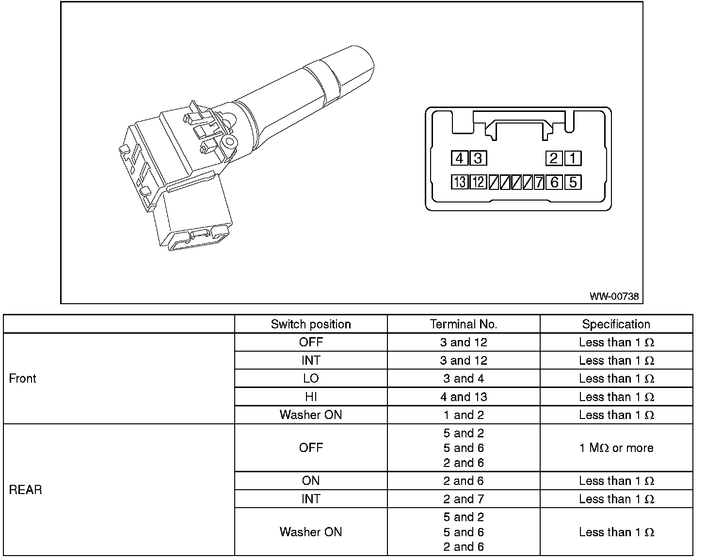 2. Check the continuity of the circuit of rear wiper motor stop position.