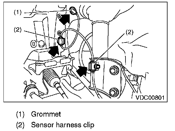 3) Remove the sensor harness clip and the grommet.