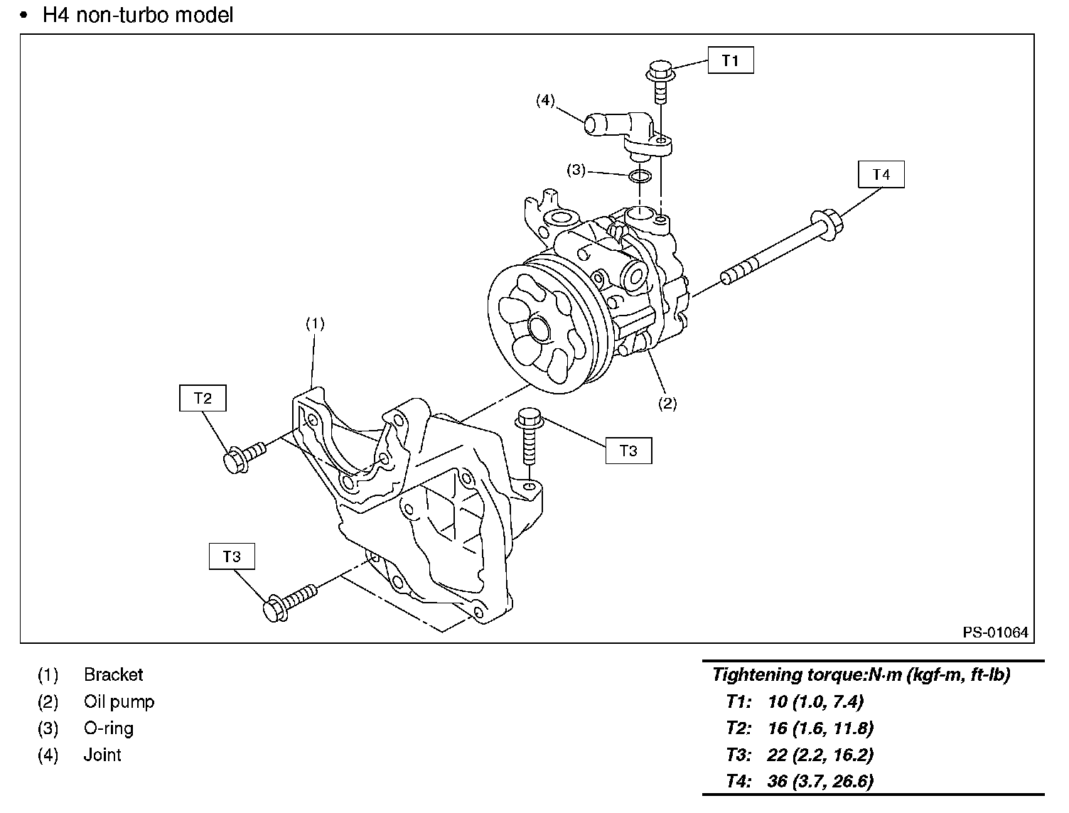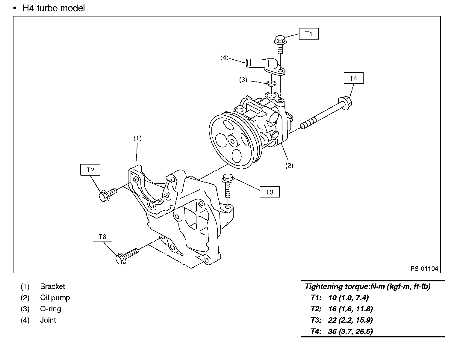 Power Steering Pump Components (H4 non-turbo model):