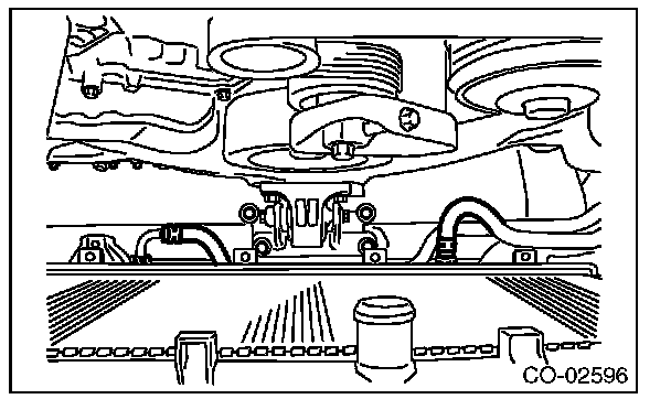 3) Remove the radiator cap, fill the radiator with engine coolant, and then install the radiator cap tester to the filler neck of radiator.