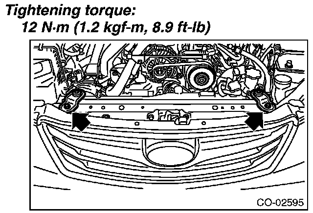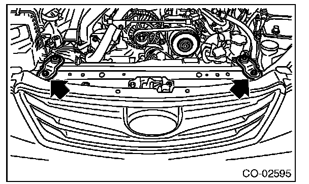 Insert pins on the lower side of radiator into the radiator lower cushions on vehicle side.
